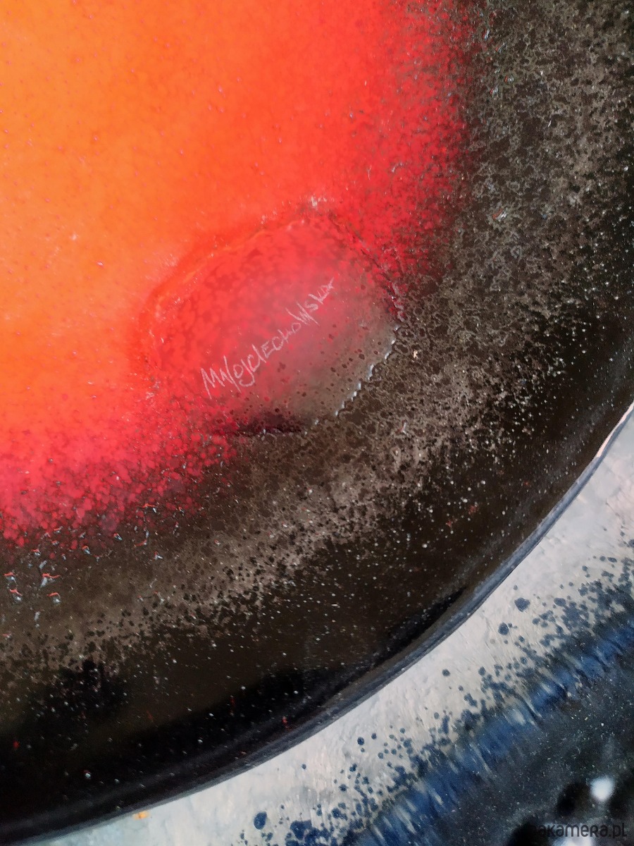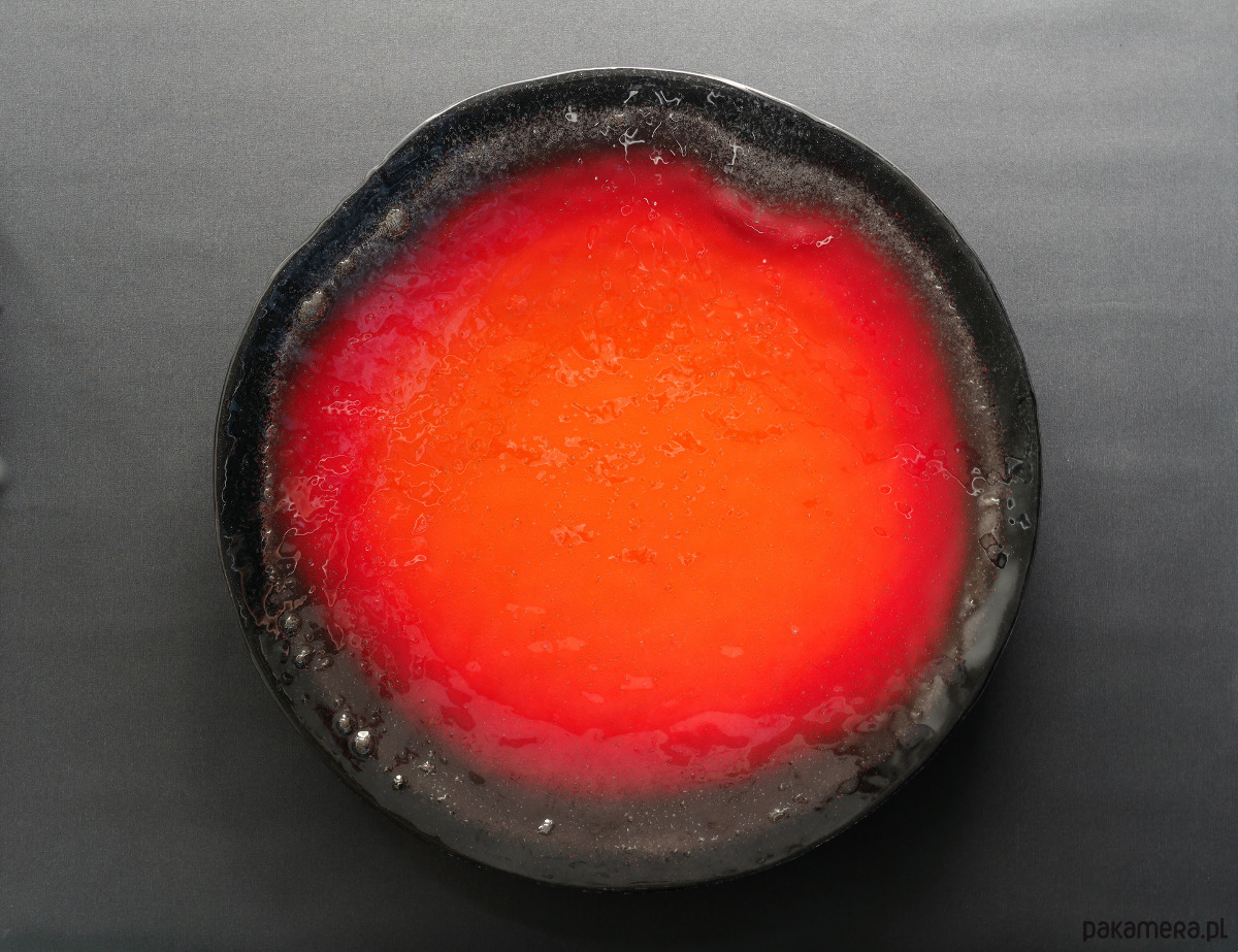 Unikatowa, szklana patera i jednocześnie talerz, która została zaprojektowana oraz ręcznie wykonana przez artystkę Martę Wojciechowską. Patera może służyć nie tylko jako ozdoba stołu, ale także jako dekoracja na ścianę. Połączenie głębokiej czerni z soczystymi czerwieniami przechodzącymi w oranż pobudzi i urozmaici każde wnętrze.
