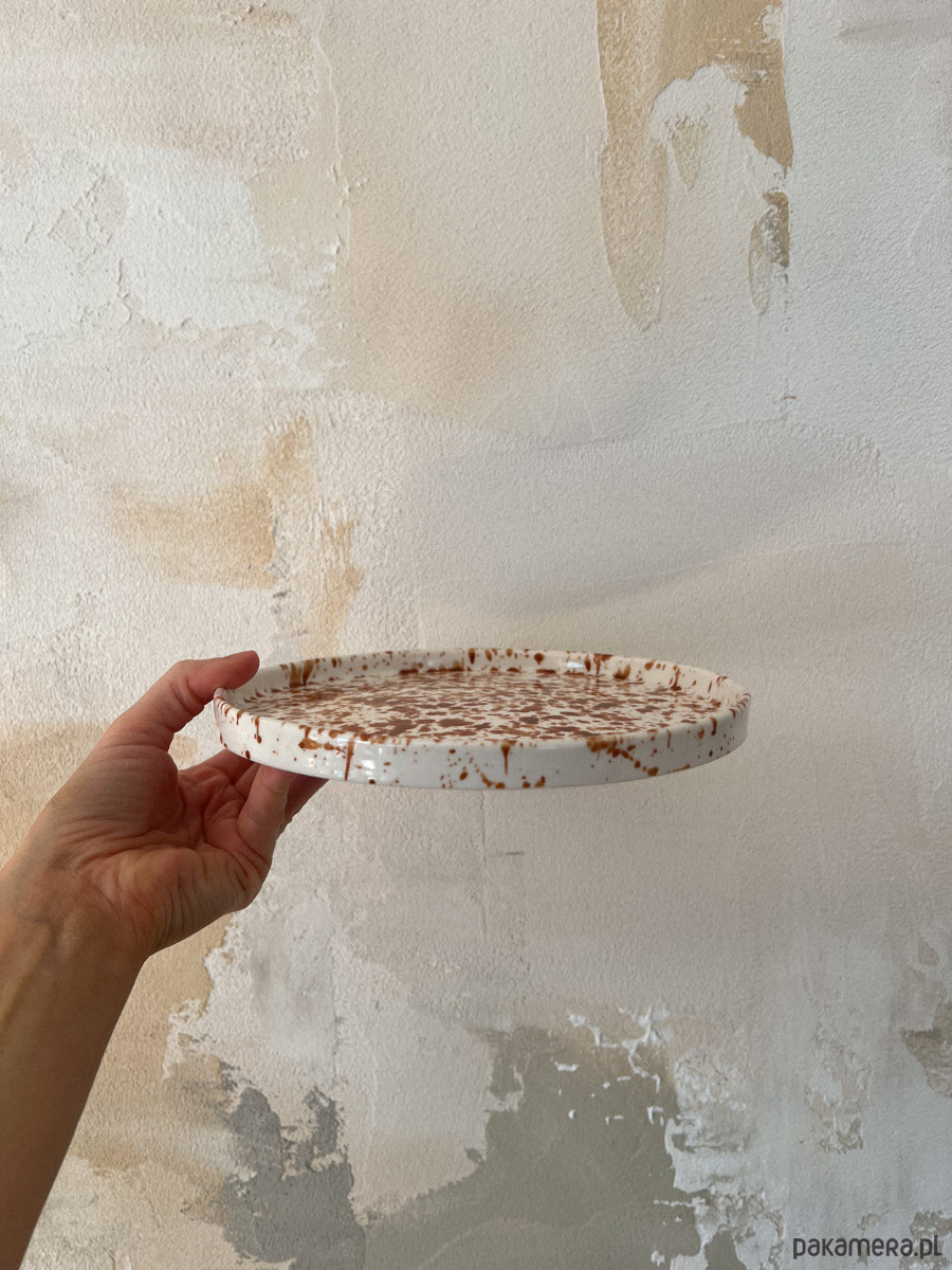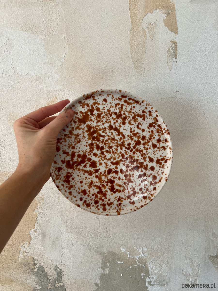 Talerz porcelanowy nakrapiany brązowy / 21 cm