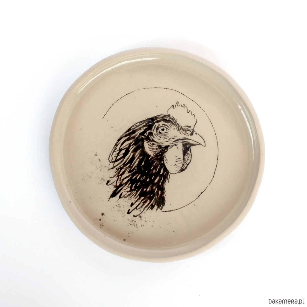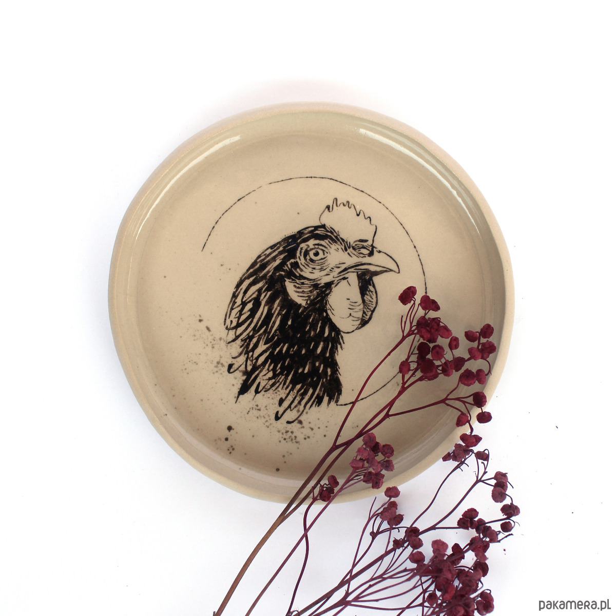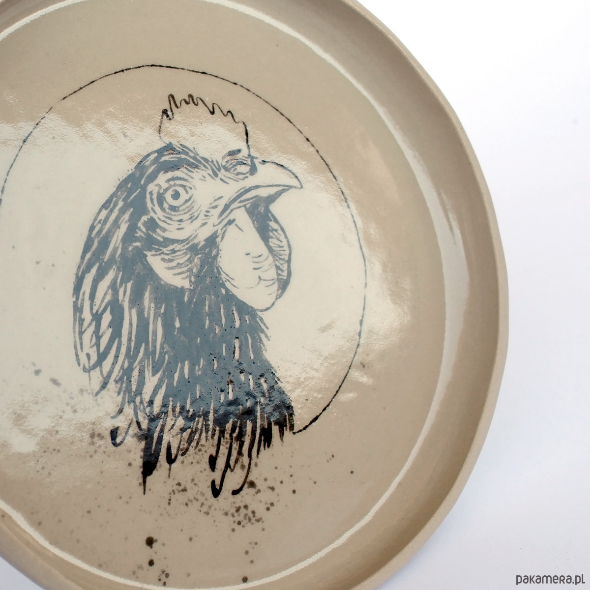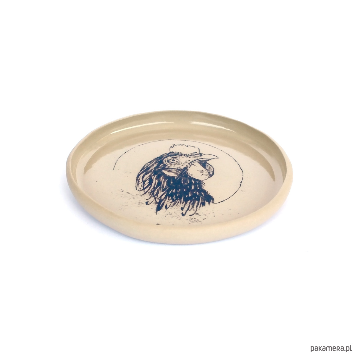 Talerz malowany farbami podszkliwnymi. Talerz wykonany w małej krakowskiej pracowni ceramicznej. Zastosowano wysokiej jakości kremową glinę kamionkową, 100% handmade. Wypalany dwukrotnie, szkliwiony jednostronnie , sygnowany. Zastosowane szkliwo nadaje się do kontaktu z żywnością. Talerzyk można myć w zmywarce.