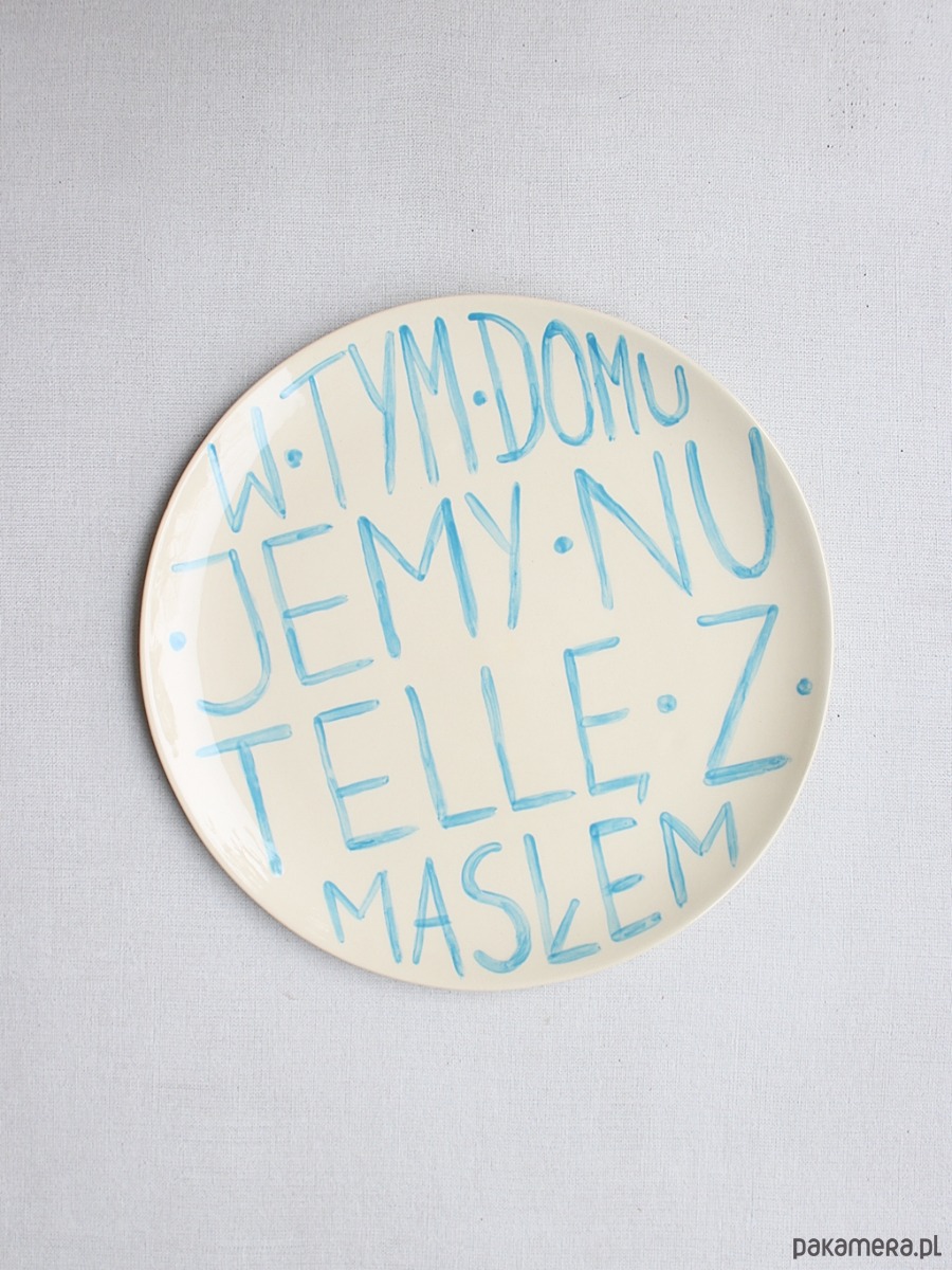 Duży talerz z ręcznie malowanym napisem: