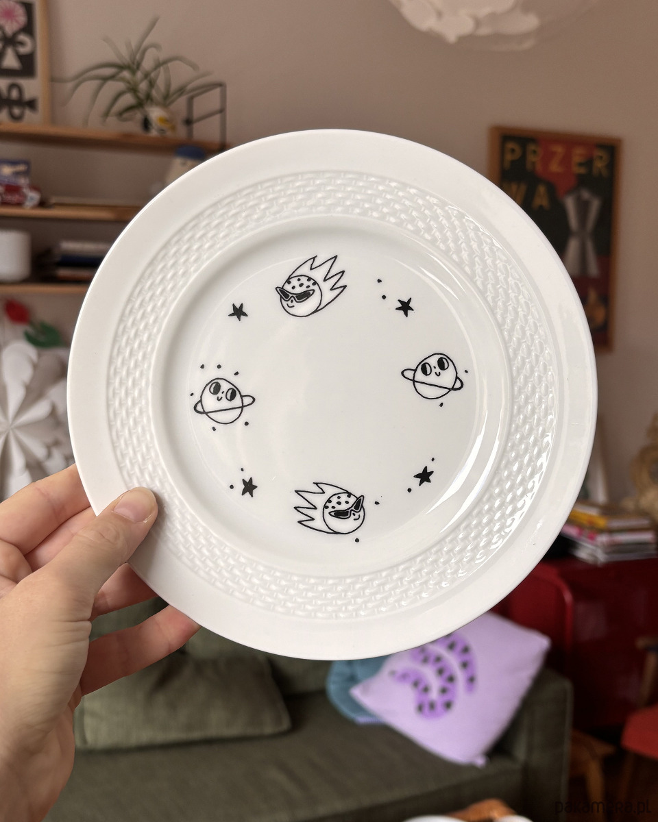 Talerz z planetami | talerz z buźką | pozytywny prezent | talerz śniadaniowy | ceramika vintage