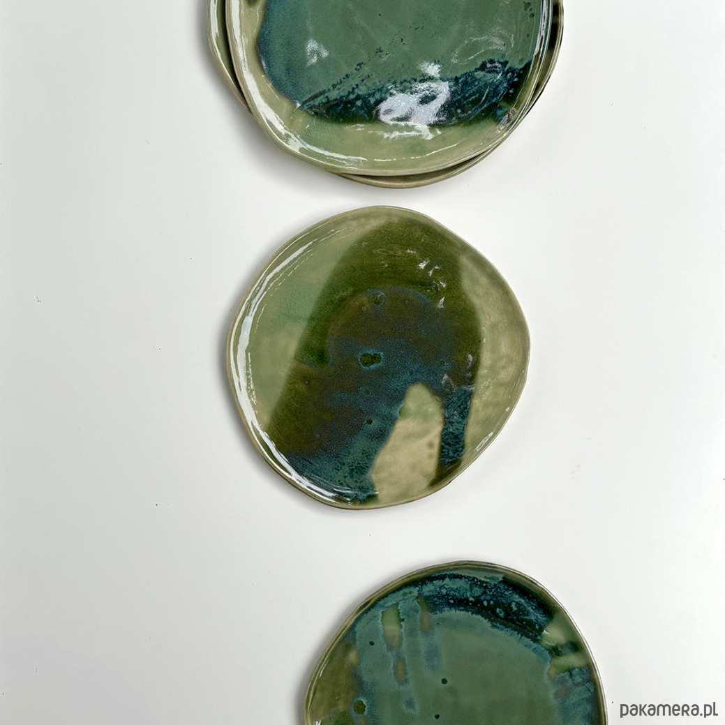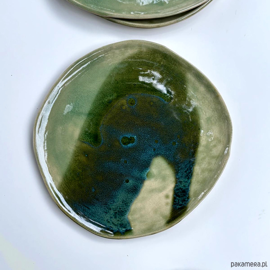 Talerze lepione i szkliwione ręcznie. Nieznacznie różnią się wielkością i pojemnością.