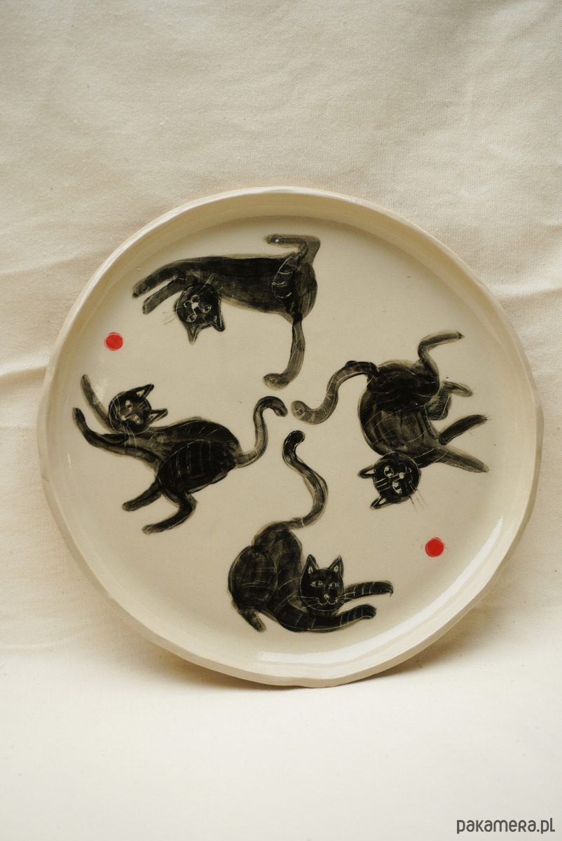 Talerzy w czarne koty. Ceramika ręcznie robiona