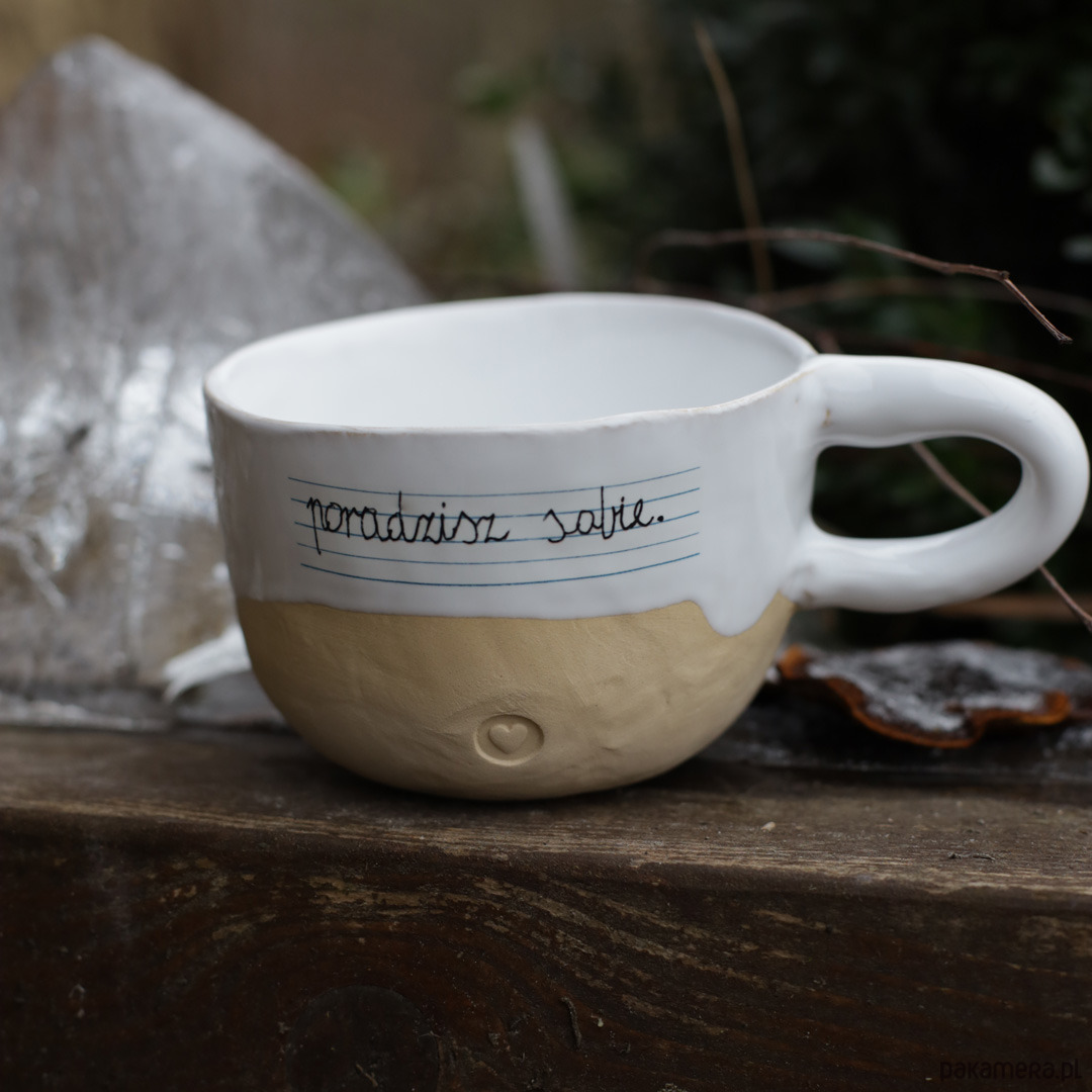 To fragment wycięty z zeszytu mojej córki Emilki z pierwszej klasy, przeniesiony na ceramikę za pomocą specjalnej kalki ceramicznej.