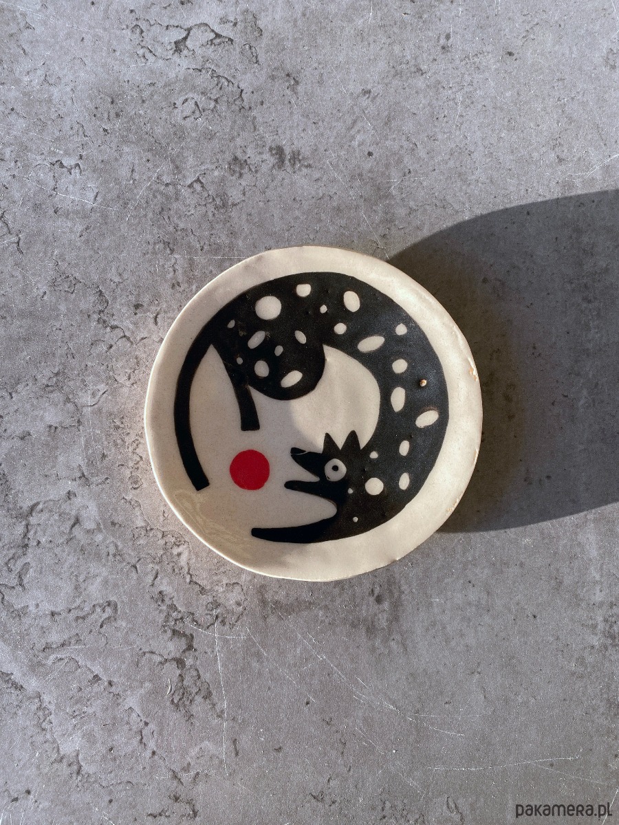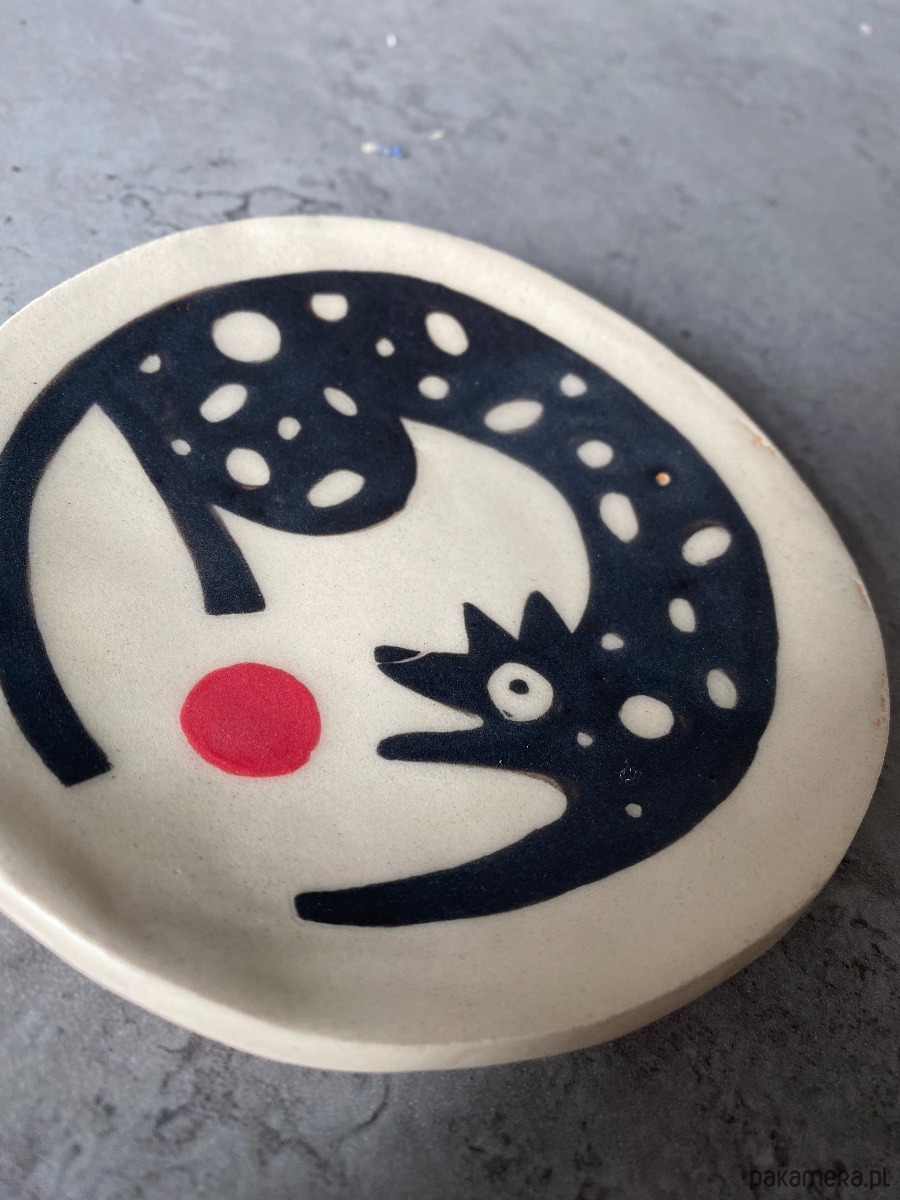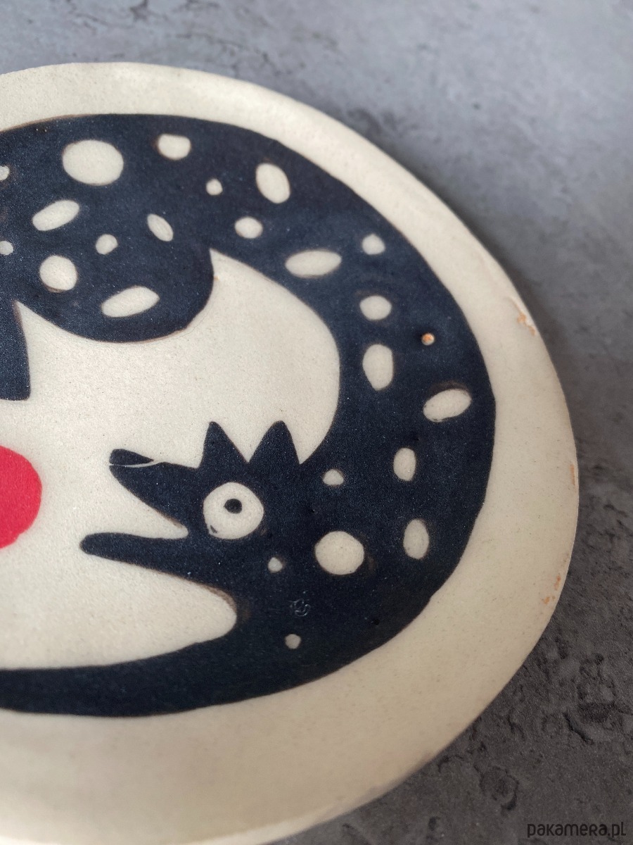 Mały talerzyk z gliny, ręcznie robiony i malowany, wypalony w wysokiej temperaturze. Idealny jako spodeczek, talerzyk deserowy lub dekoracyjny, świetnie sprawdzi się także na prezent :) Każdy talerz robiony jest ręcznie, więc nie ma dwóch identycznych, ale dzięki temu że jest "nieidealny", czyni go to unikatowym i niepowtarzalnym:) Talerzyk jest częścią większej kolekcji dostępnej na moim profilu (na 6. zdjęciu inne przedmioty z tej kolekcji)