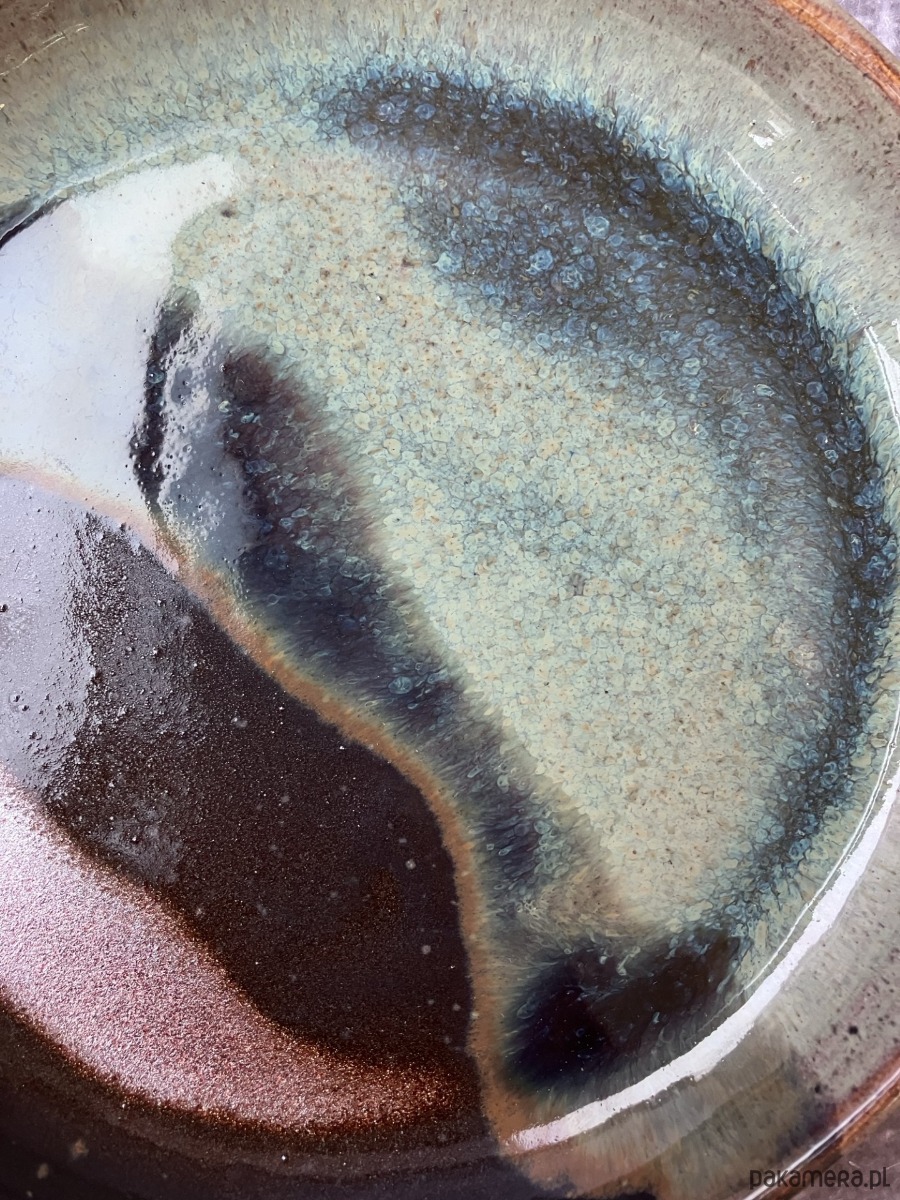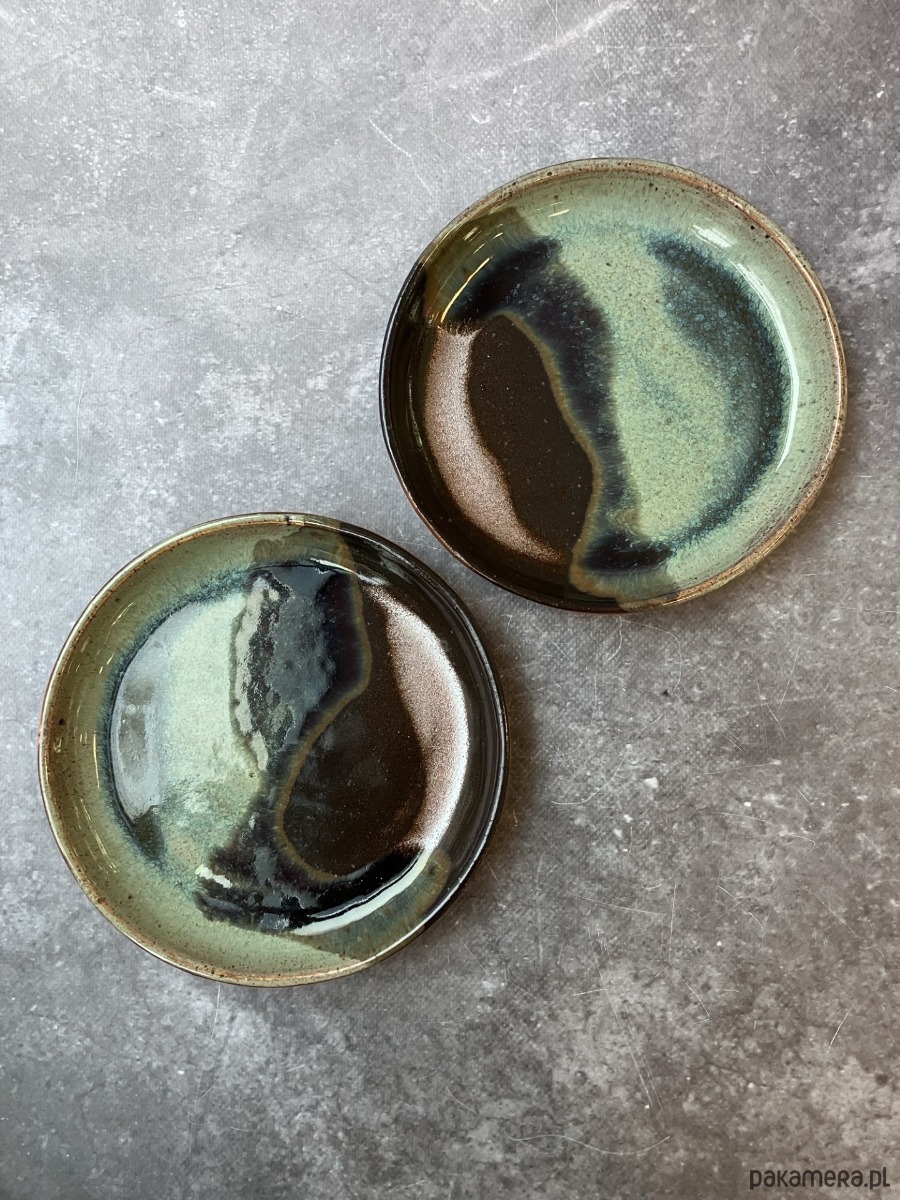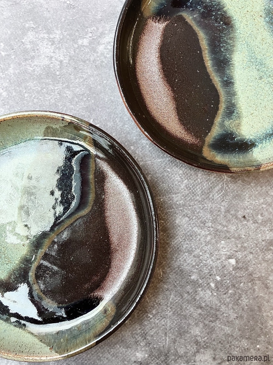 Delikatnie nieregularne, organiczne wzory przypominają krajobrazy malowane naturą: falowanie wody, odcienie minerałów czy zmieniające się światło. Talerzyk ma subtelny połysk, który dodaje mu elegancji i podkreśla wielowarstwową strukturę szkliwa.