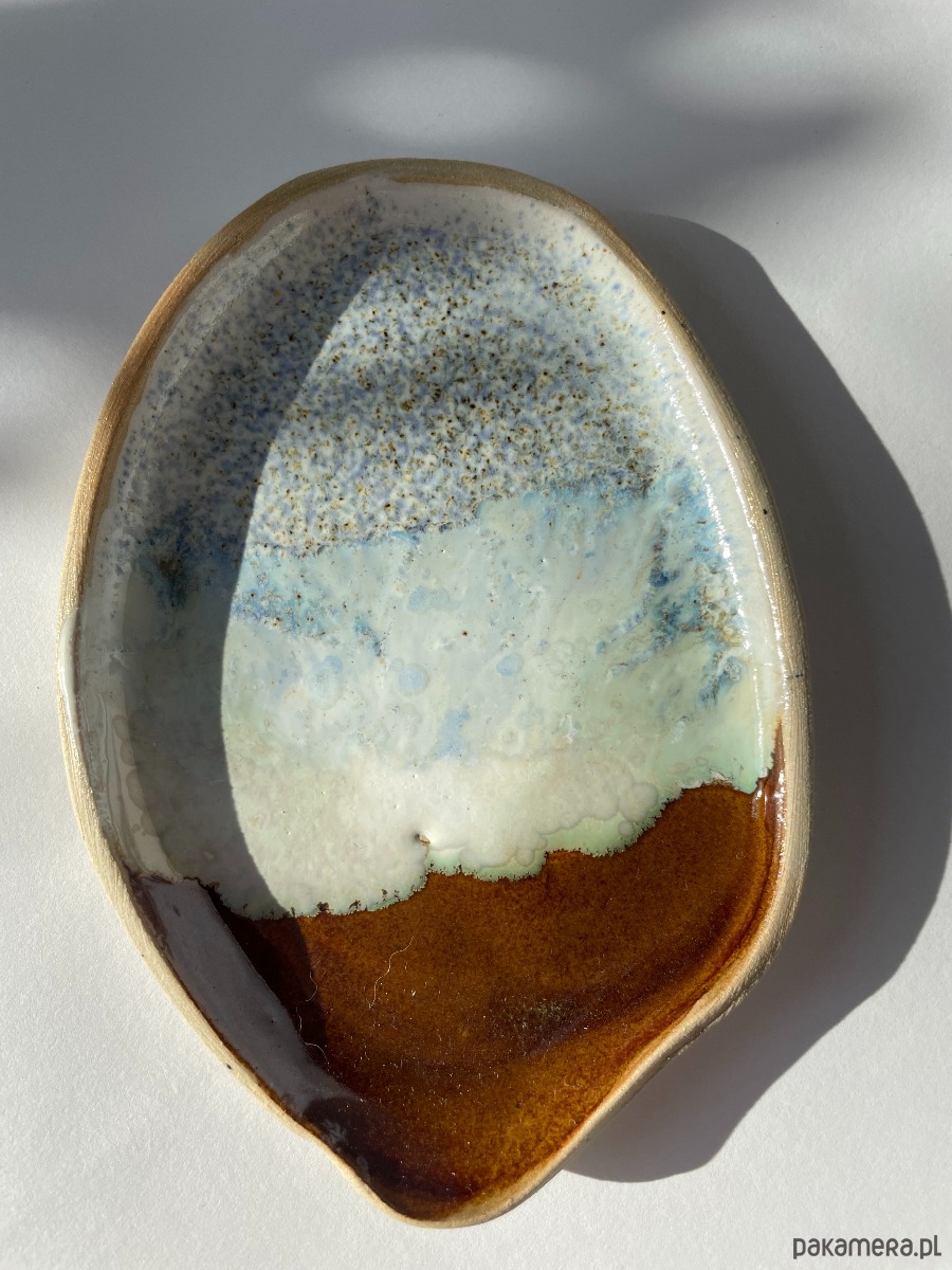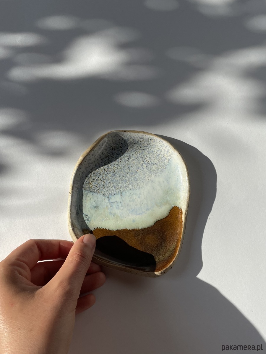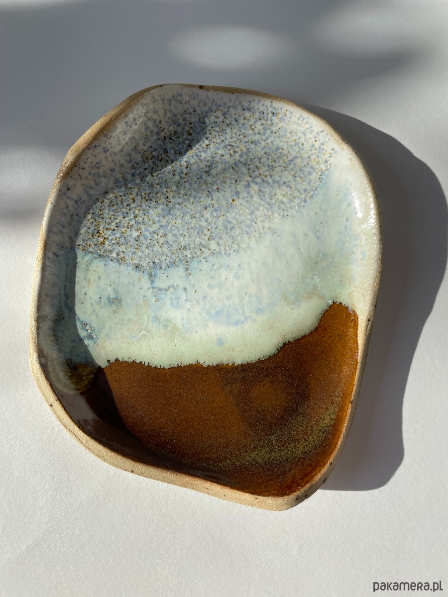 Talerzyk o nieregularnym kształcie. Idealny na mały deser, sushi albo jako podstawka na biżuterię.