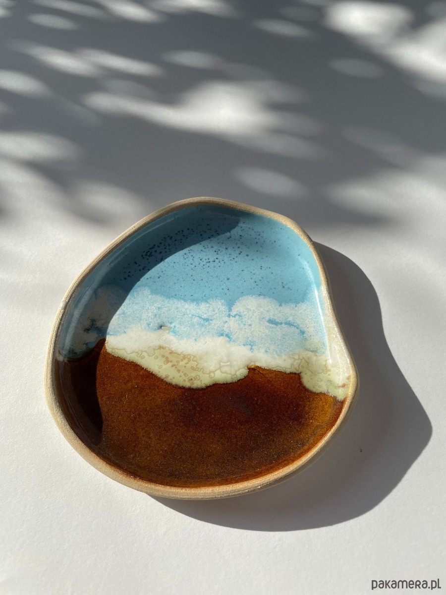 Talerzyk o nieregularnym kształcie. Idealny na mały deser, sushi albo jako podstawka na biżuterię.