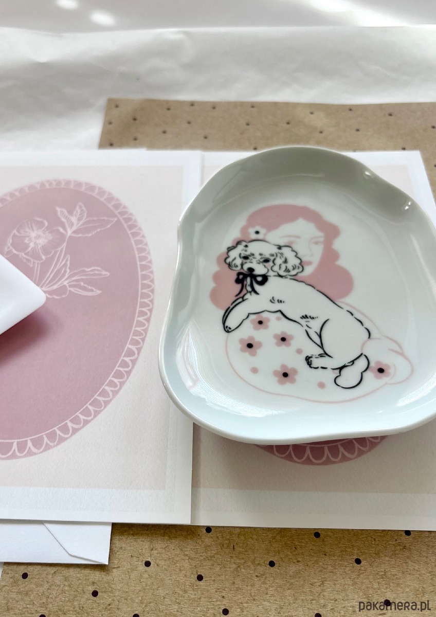 Do talerzyka dołączona kartka z pasującą grafiką.