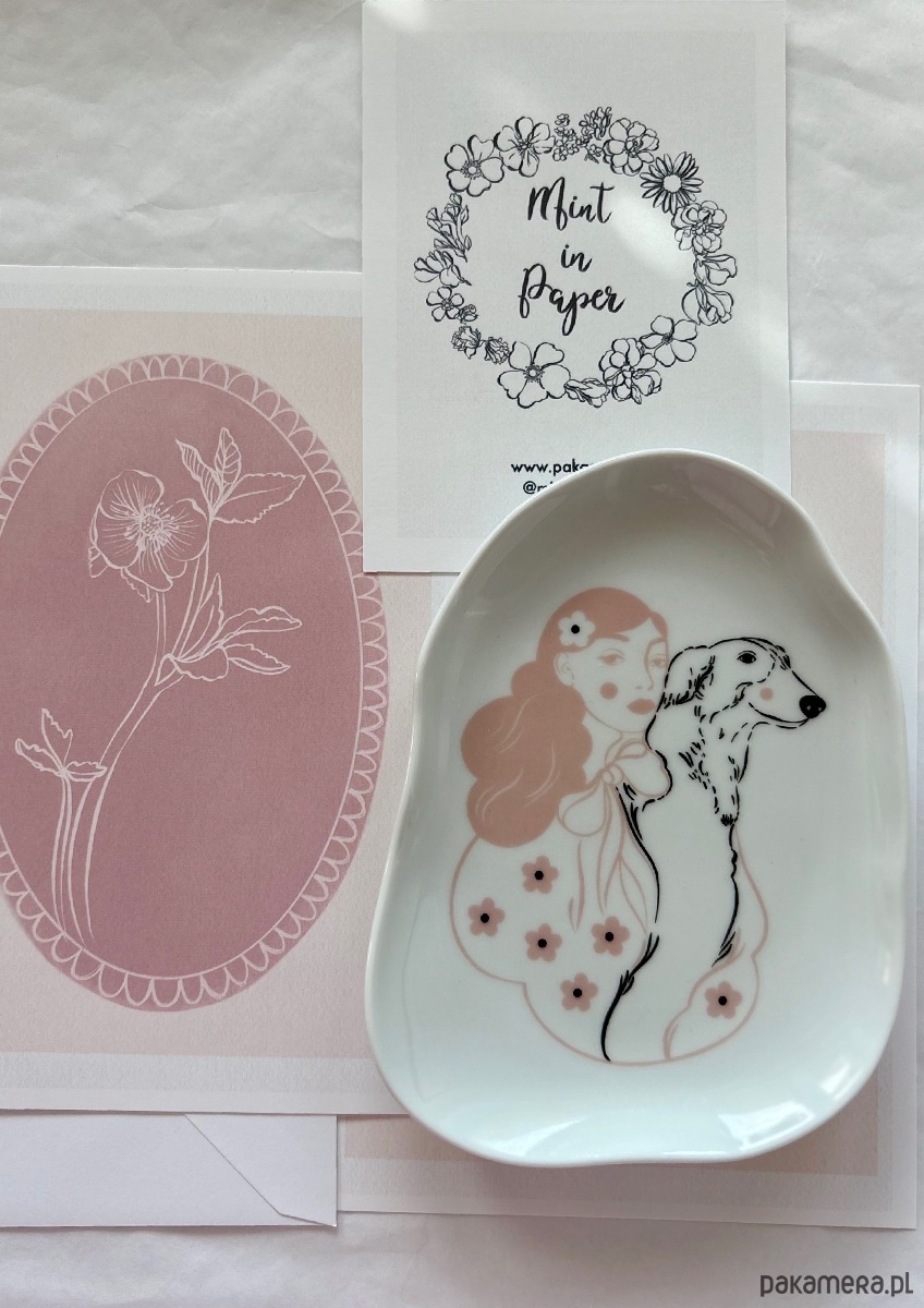 Do talerzyka dołączona kartka z pasującą grafiką.
