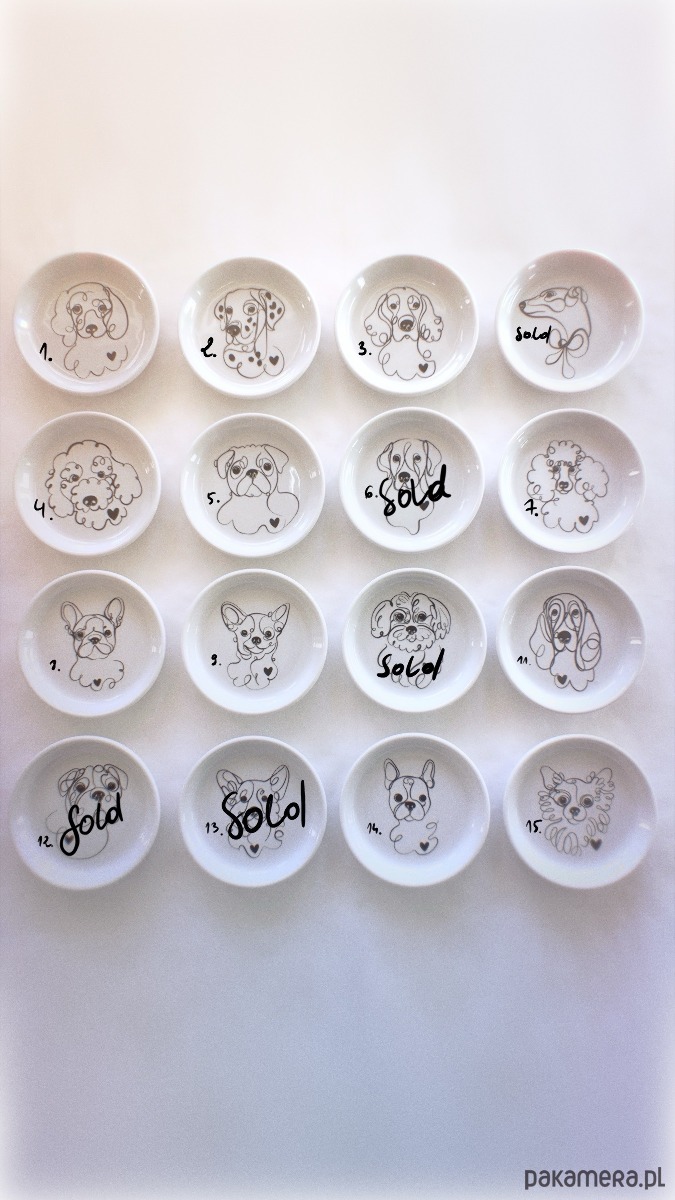 Talerzyk na biżuterię z pieskiem line art.