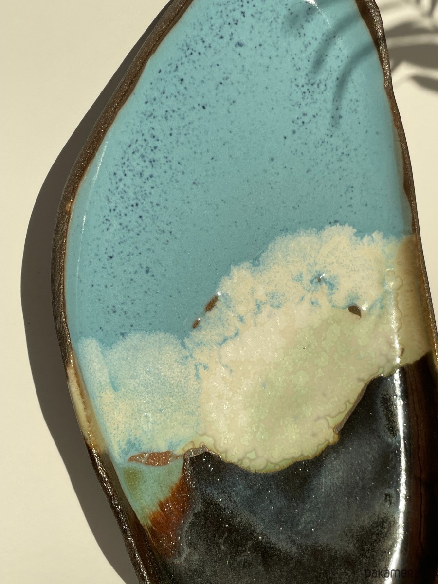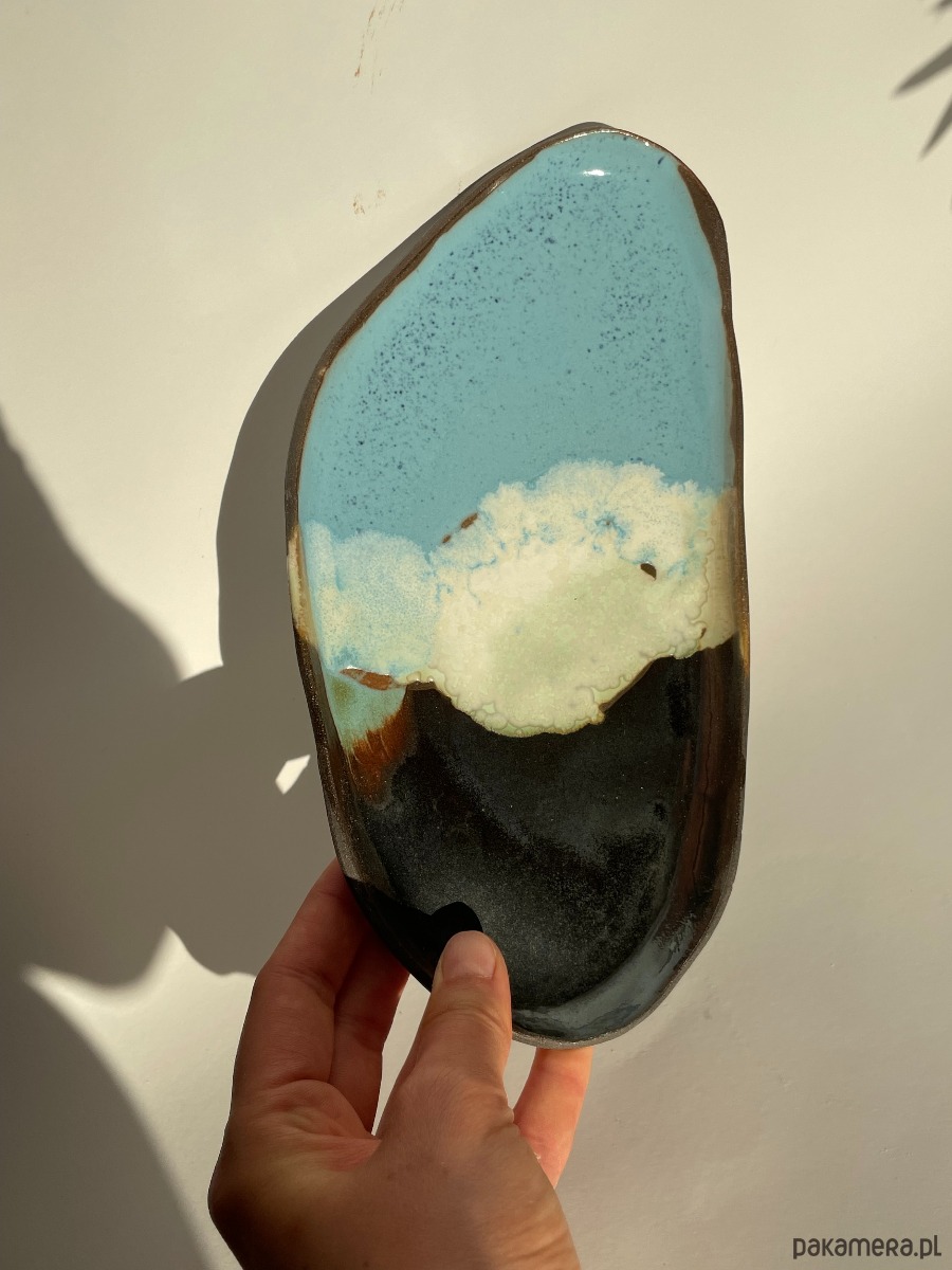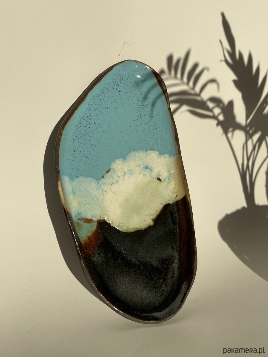 Talerzyk o nieregularnym kształcie. Idealny na przekąski, desery czy sushi, ale spełni się również jako podstawka na biżuterię.