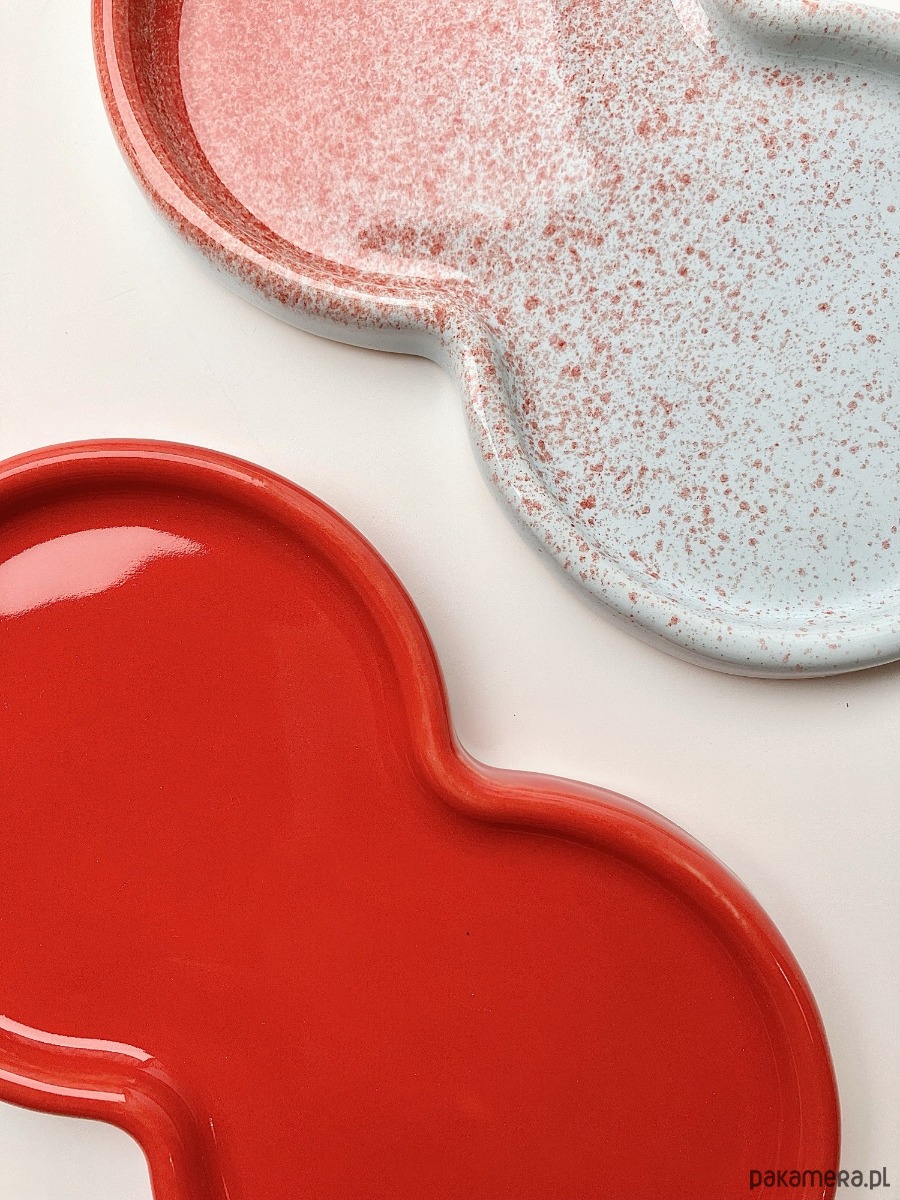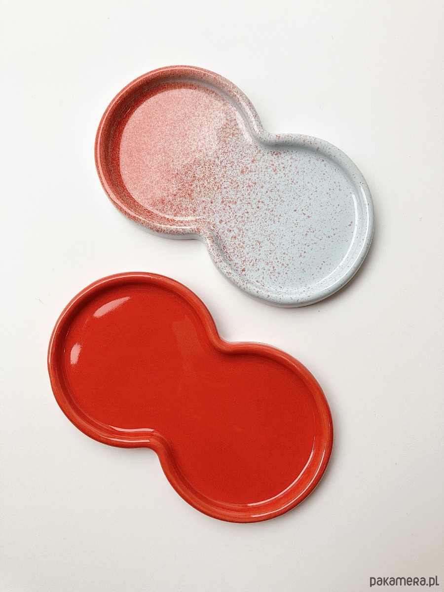 Ten wyjątkowy, ręcznie wykonany ceramiczny talerzyk łączy funkcjonalność z artystycznym designem. Ma nowoczesny kształt i pokryty jest pięknym szkliwem w odcieniu jasnoniebieskiego z czerwonym gradientem, tworząc stylowy, a jednocześnie wesoły efekt. Idealny do serwowania przekąsek, jako spodek do filiżanki lub kubka lub jako podstawka na kadzidła albo biżuterię.