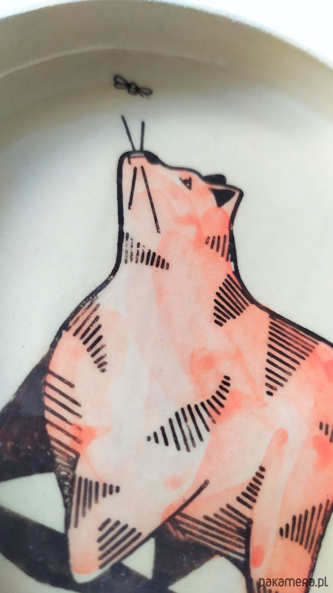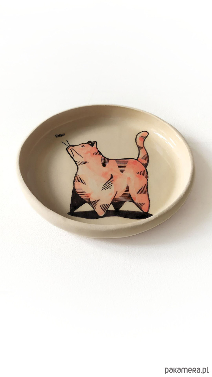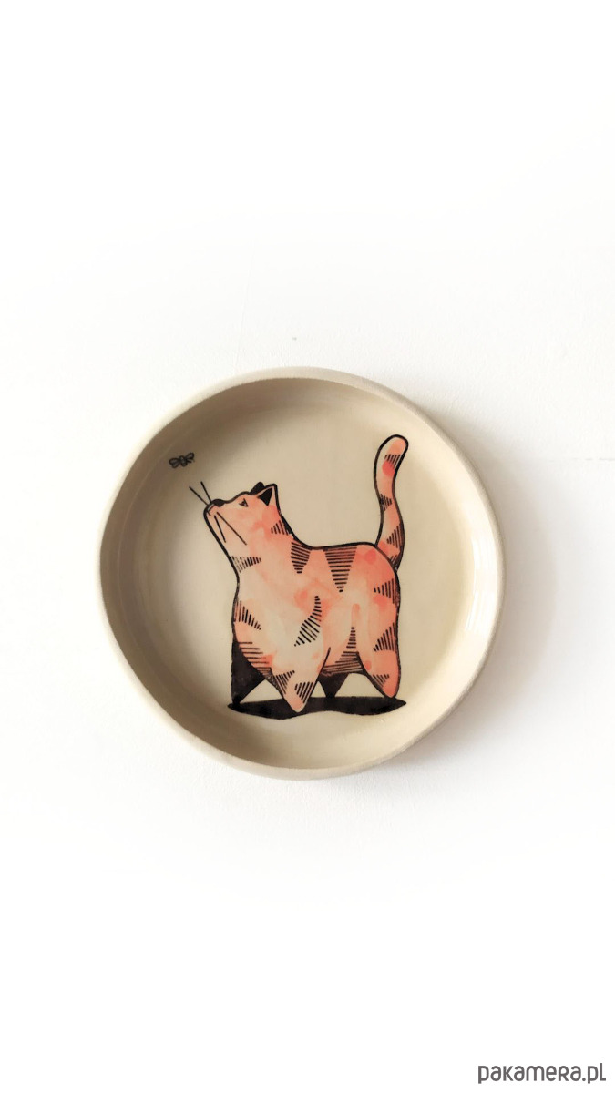 Ręcznie malowany farbami podszkliwnymi. Talerzyk wykonany w małej krakowskiej pracowni ceramicznej. Lepiony z wysokiej jakości kremowej gliny kamionkowej,100% handmade. Wypalany dwukrotnie, szkliwiony jednostronnie, transparentnym szkliwem. Sygnowany. Zastosowane szkliwo nadaje się do kontaktu z żywnością. Talerzyk można myć w zmywarce. Średnica ok. 13 cm, wys. 2 cm