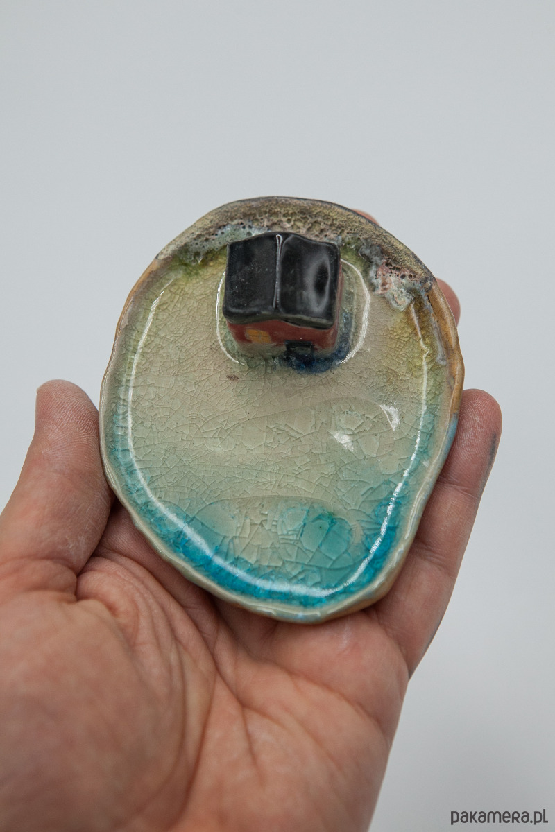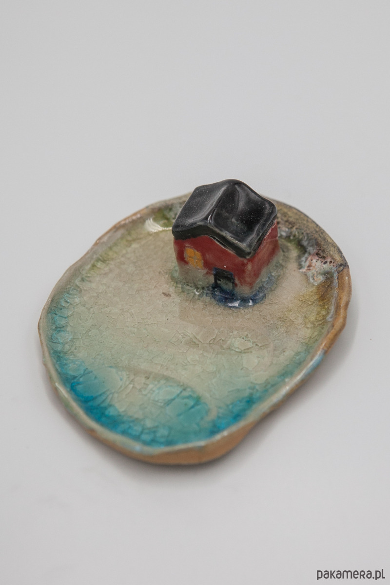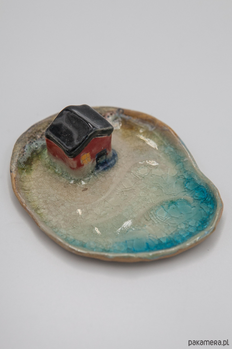 Talerzyk z domkiem i morzem na klucze/biżuterię. Wymiary 10x8 cm.