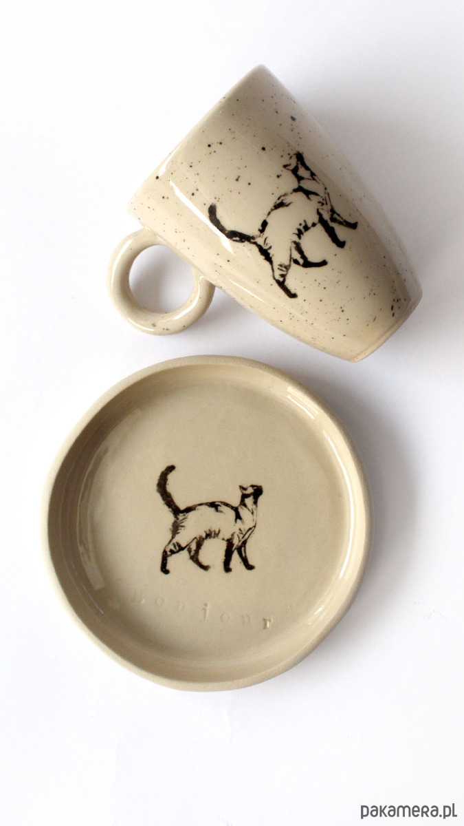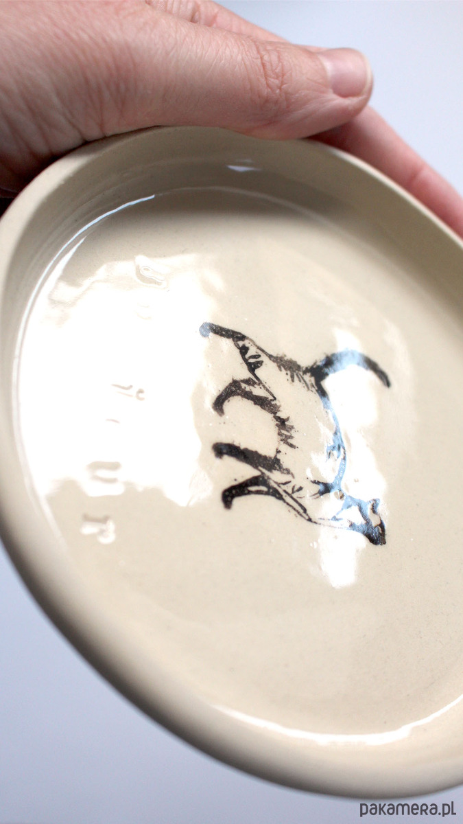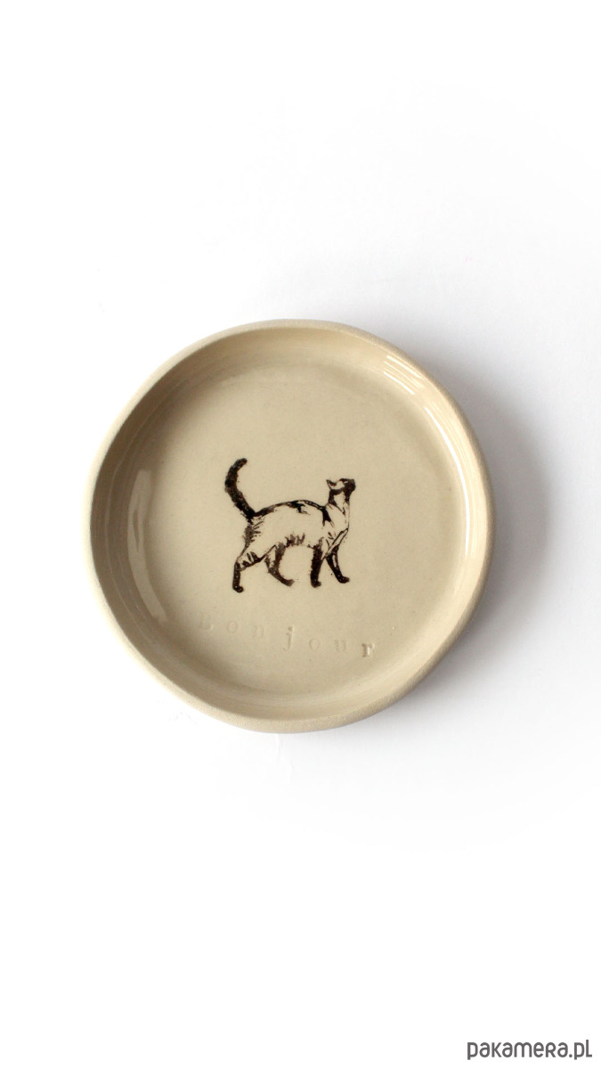 Talerzyk zdobiony autorską techniką graficzną z wytłoczonym napisem "bonjour". Ręcznie malowany farbami podszkliwnymi, wykonany z wysokiej jakości kremowej gliny,100% handmade. Wypalany dwukrotnie, szkliwiony jednostronnie, transparentnym szkliwem. Sygnowane. Zastosowane szkliwo nadaje się do kontaktu z żywnością. Talerzyki można myć w zmywarce. Średnica ok. 13 cm, wys. 2 cm