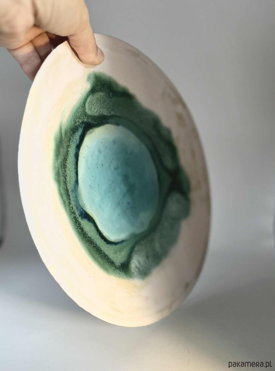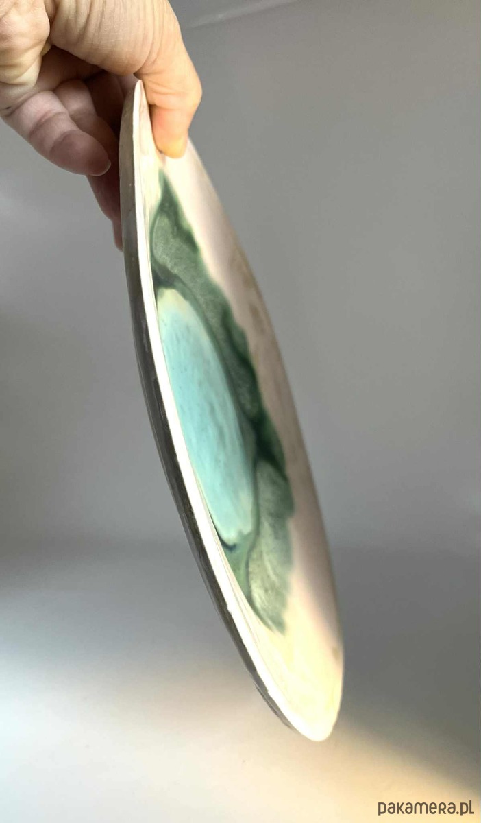 Talerz Laguna powstał z miłości do natury i jej nieprzewidywalnych form. Jego szkliwiona powierzchnia przypomina spokojną lagunę, w której błękit spotyka się z zielenią i różem niczym wody oceanu o świcie.