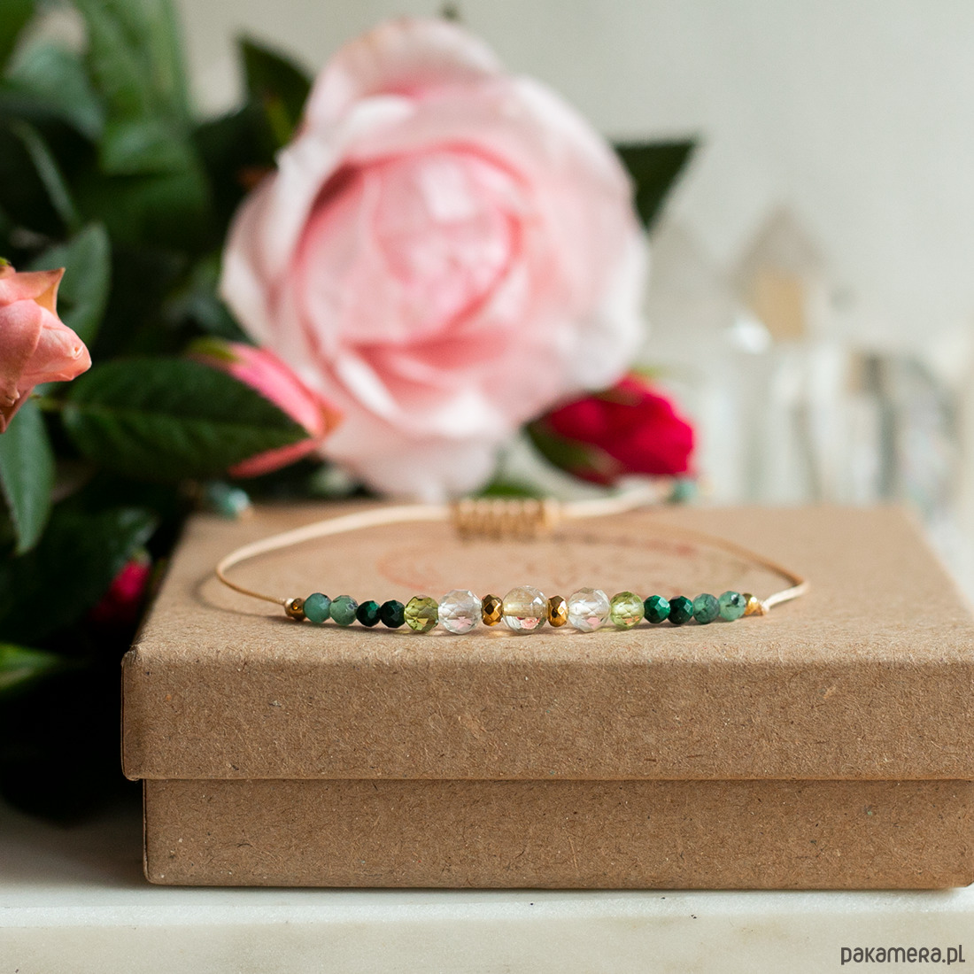 Bransoletka wykonana jest na beżowym sznurku jubilerskim. Opcjonalnie również w kolorze czarnym lub czerwonym, dodaj taką adnotację do zamówienia.