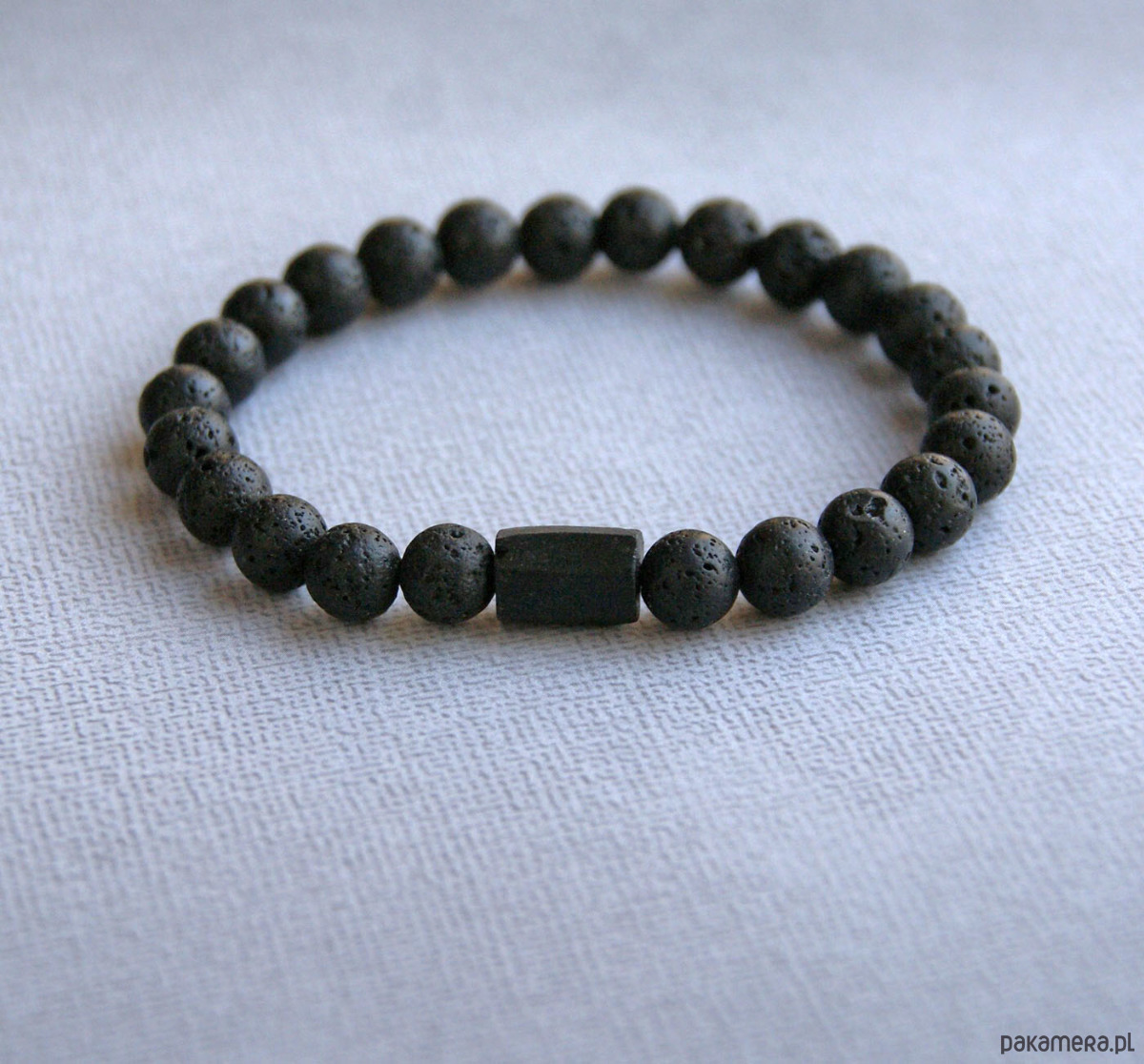 wykonana z czarnego turmalinu (bryłka surowa,ciosana) oraz porowatej lawy wulkanicznej (8mm)