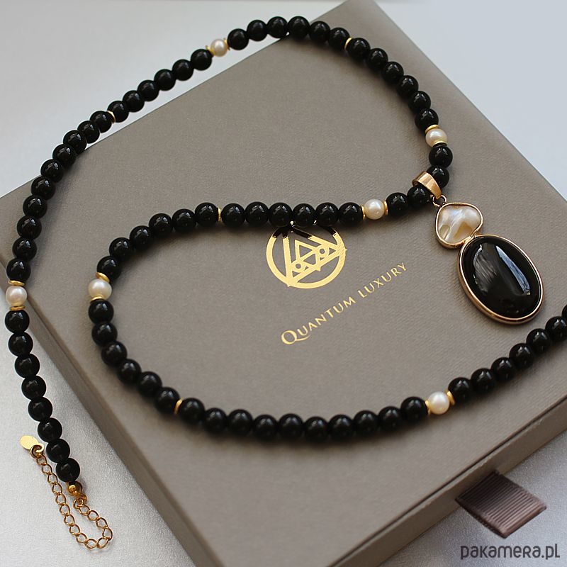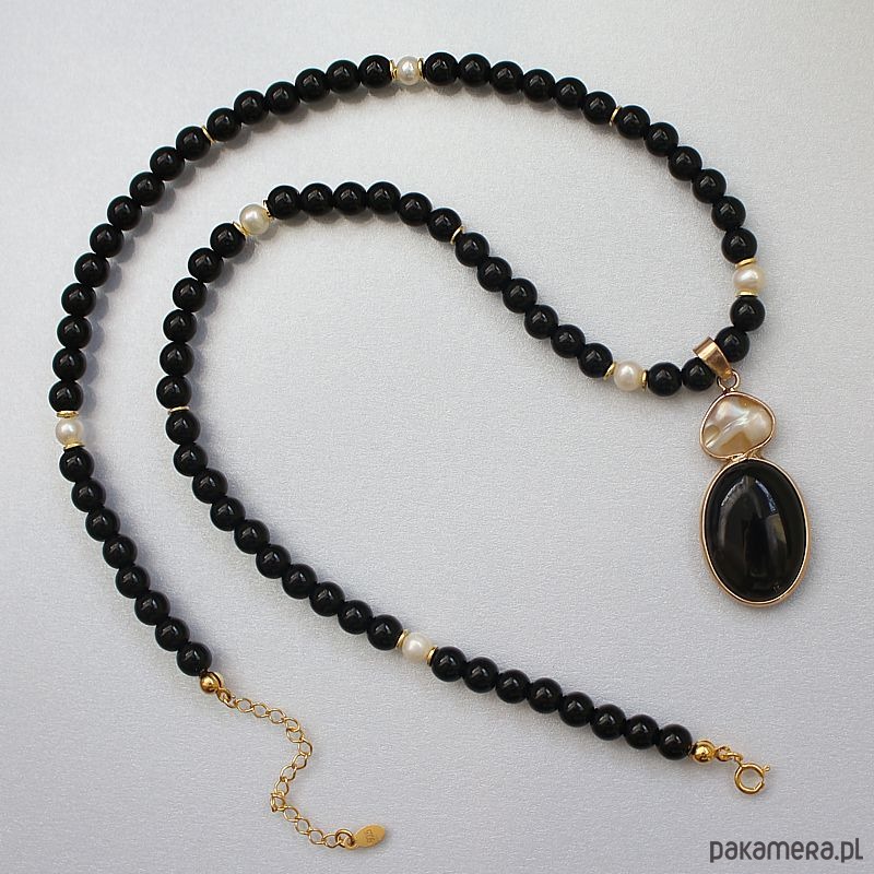 Talizman Ochronny z onyksami, turmalinami i macicą perłową, srebro próba 925 pozłacane 24 karatowym złotem. Zapięcie na karabińczyk z regulacją. Oczyszczony, zregenerowany, napełniony energią czystego światła o najwyższej wibracji. ❤