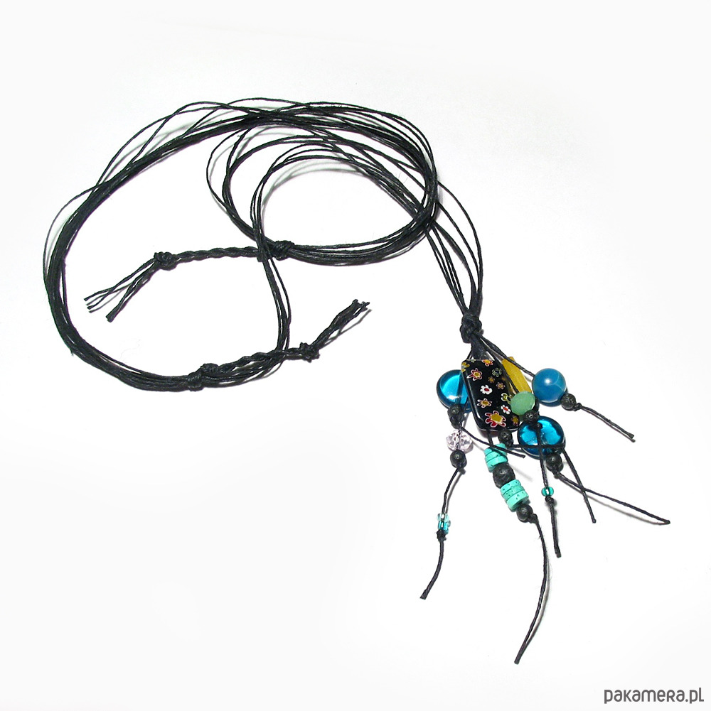Długość maksymalna ok.104 cm + długość wisiora ok. 10 cm, zapięcie regulowane przesuwanymi sznureczkami. Długość wisiora można swobodnie regulować.