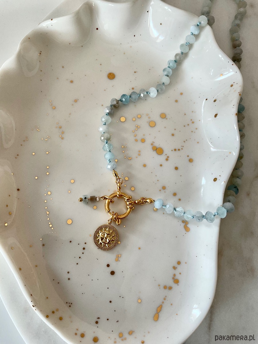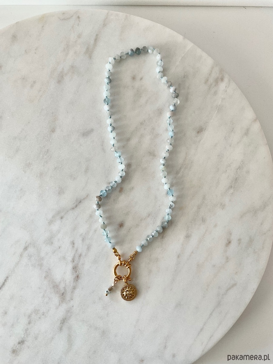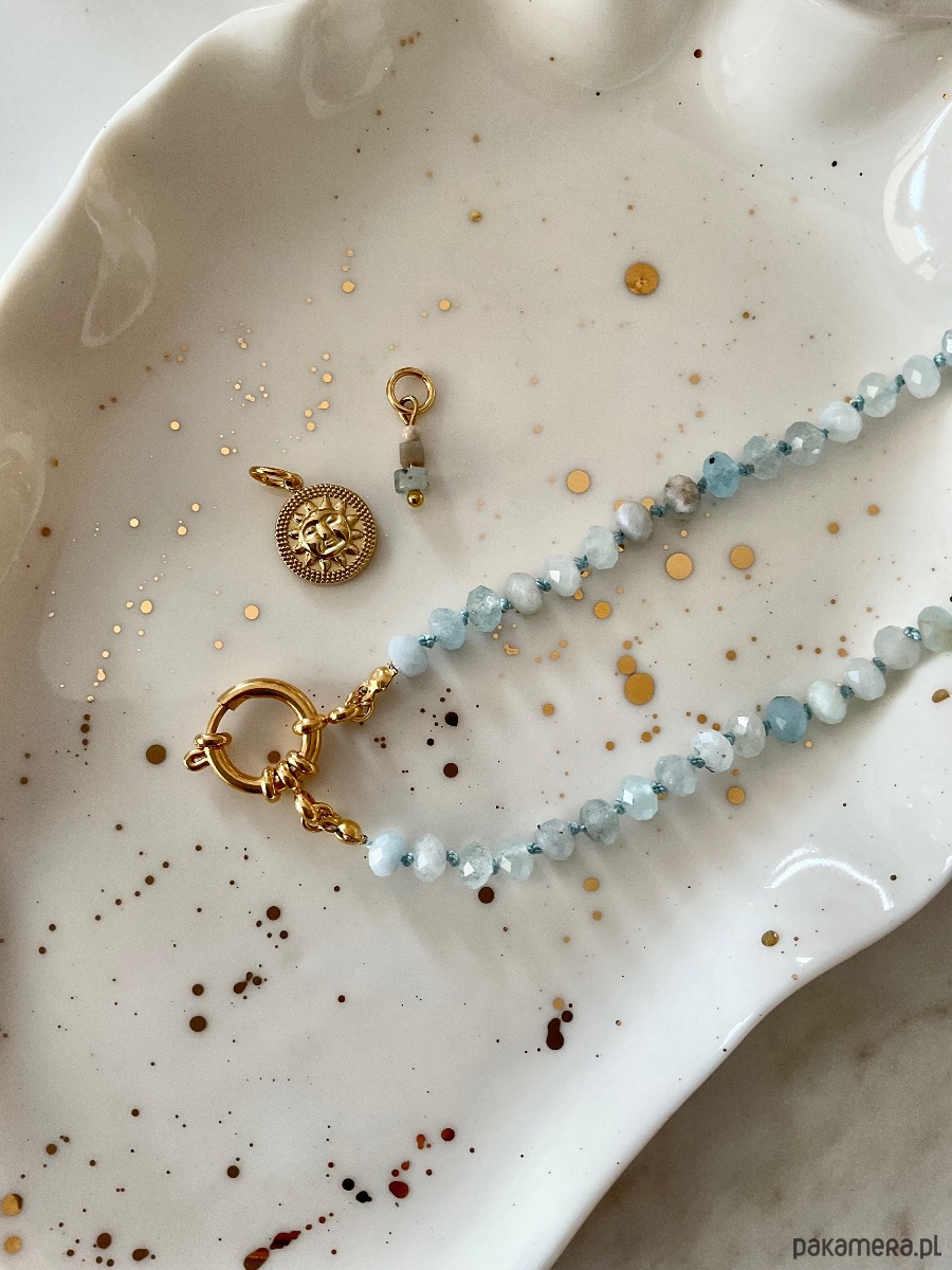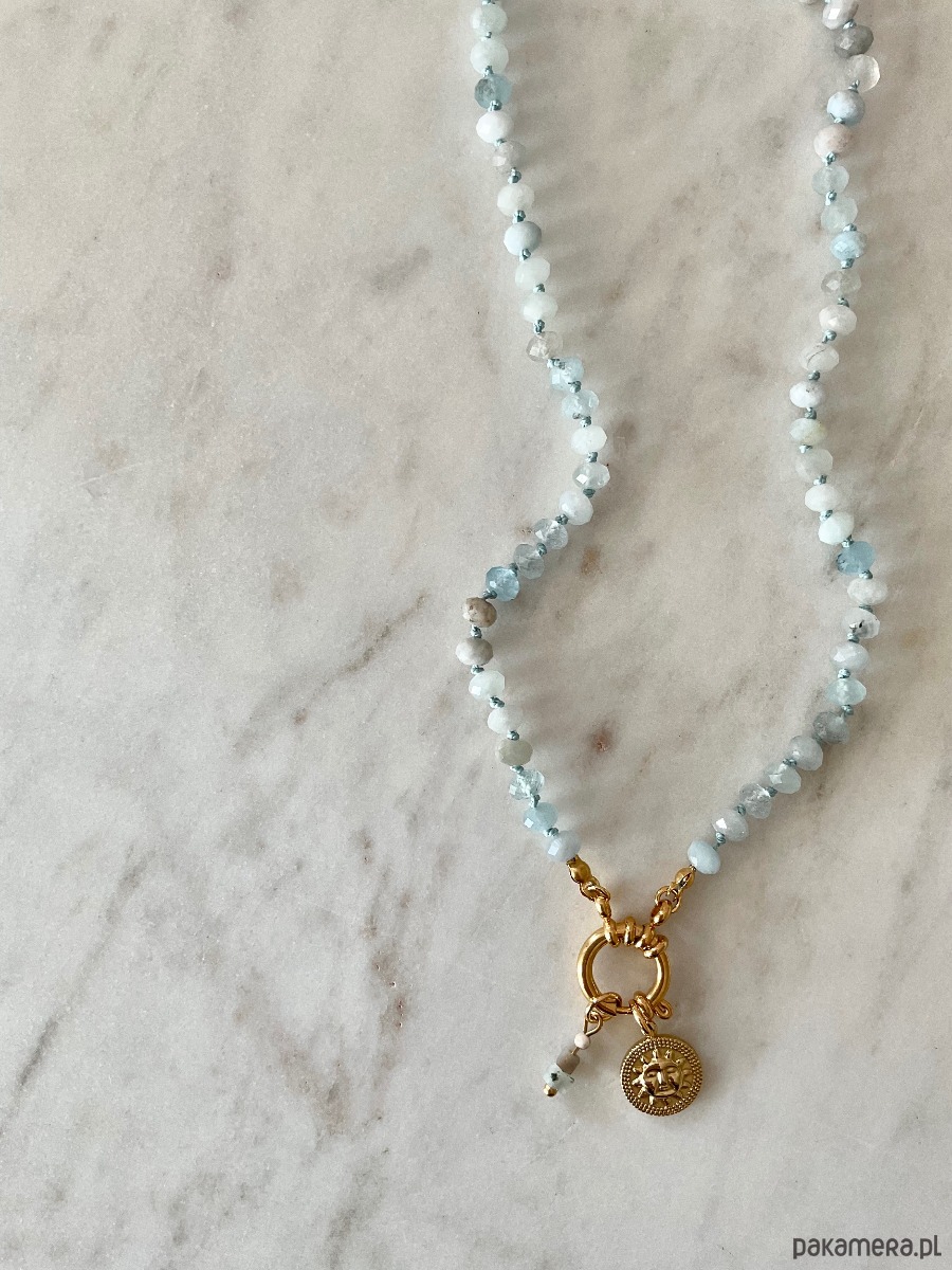 Naszyjnik talizman z akwamarynu to wyjątkowa biżuteria, która łączy elegancję z osobistym stylem. Aktywny, błękitny kamień akwamarynu, znany ze swojej uspokajającej i ochronnej energii, jest symbolem harmonii, czystości i równowagi. Jego subtelny odcień przypomina spokojną wodę i ma działanie sprzyjające medytacji oraz pozytywnemu myśleniu.