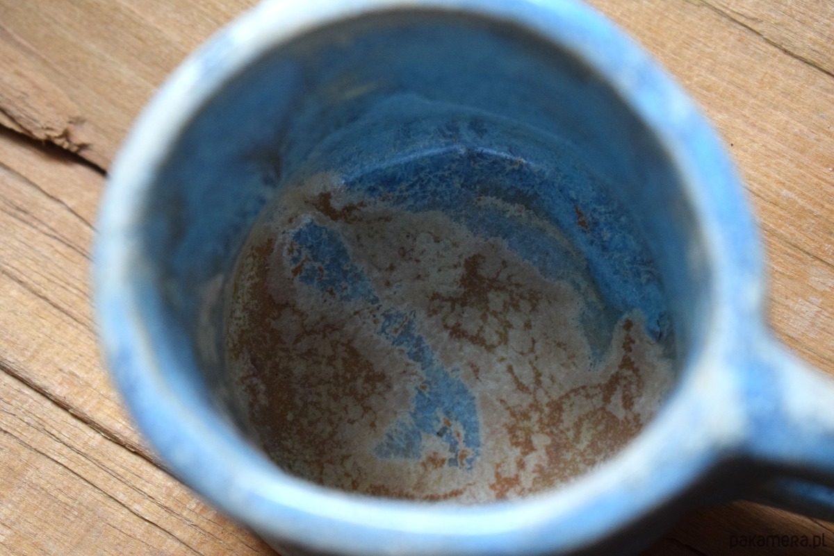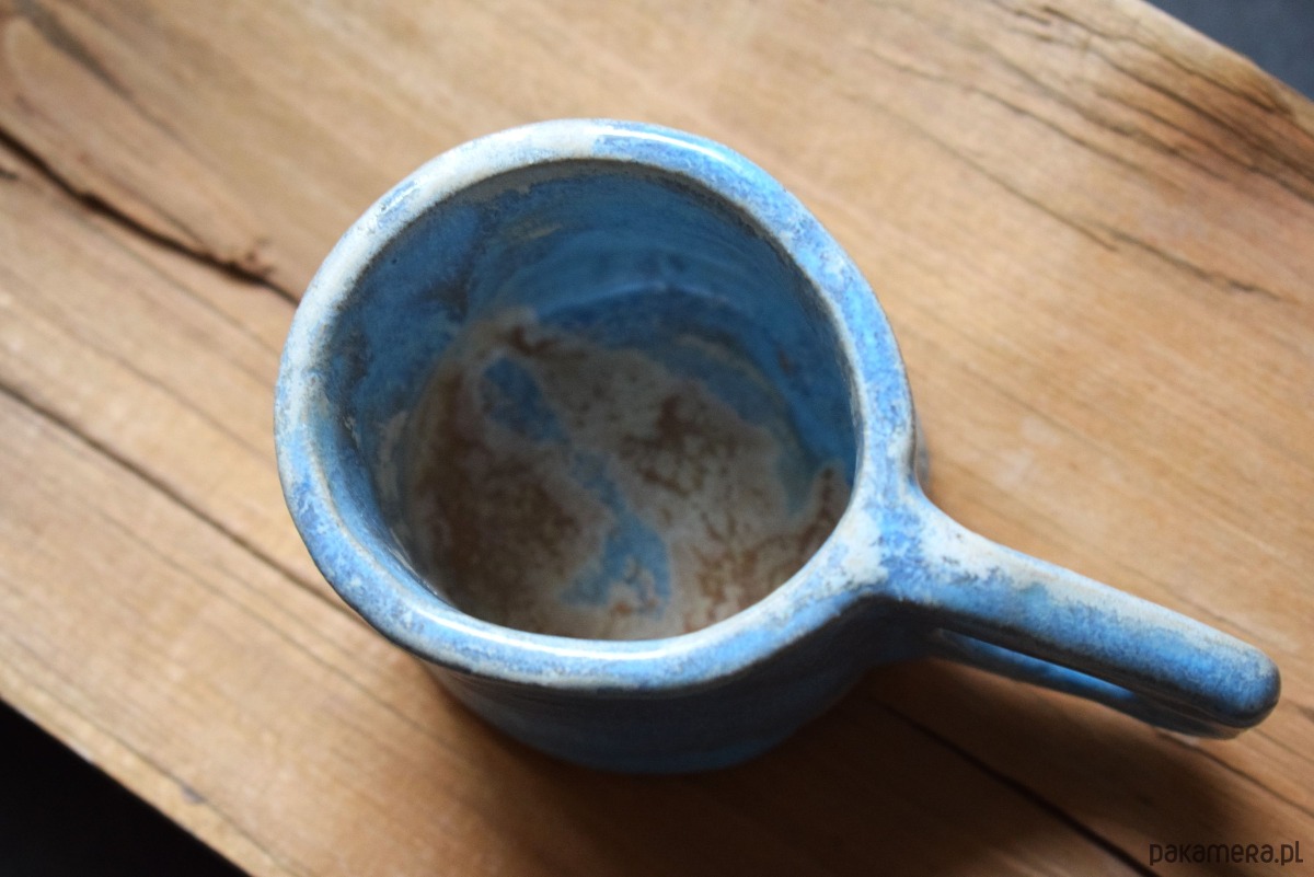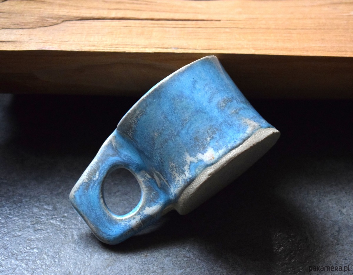 Ta filiżanka ma formę kubka z oryginalnym i wygodnym w użytkowaniu kształtem ucha. Zrobiłam ją ręcznie z jasnej gliny i wypaliłam w temperaturze 1230°C, żeby nadać jej najwyższą jakość i trwałość w codziennym użytkowaniu, a przy tym wydobyć głębię kolorów szkliw. Jest unikatowa, bo wykonana BEZ UŻYCIA FORMY. Każda następna z tej serii będzie się już zatem różniła od poprzedniej.