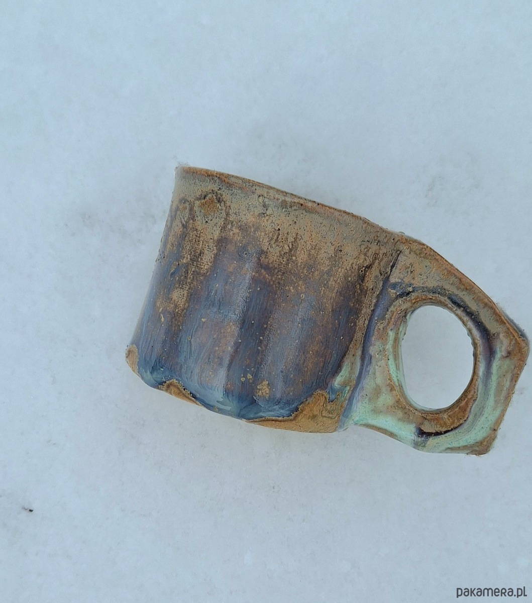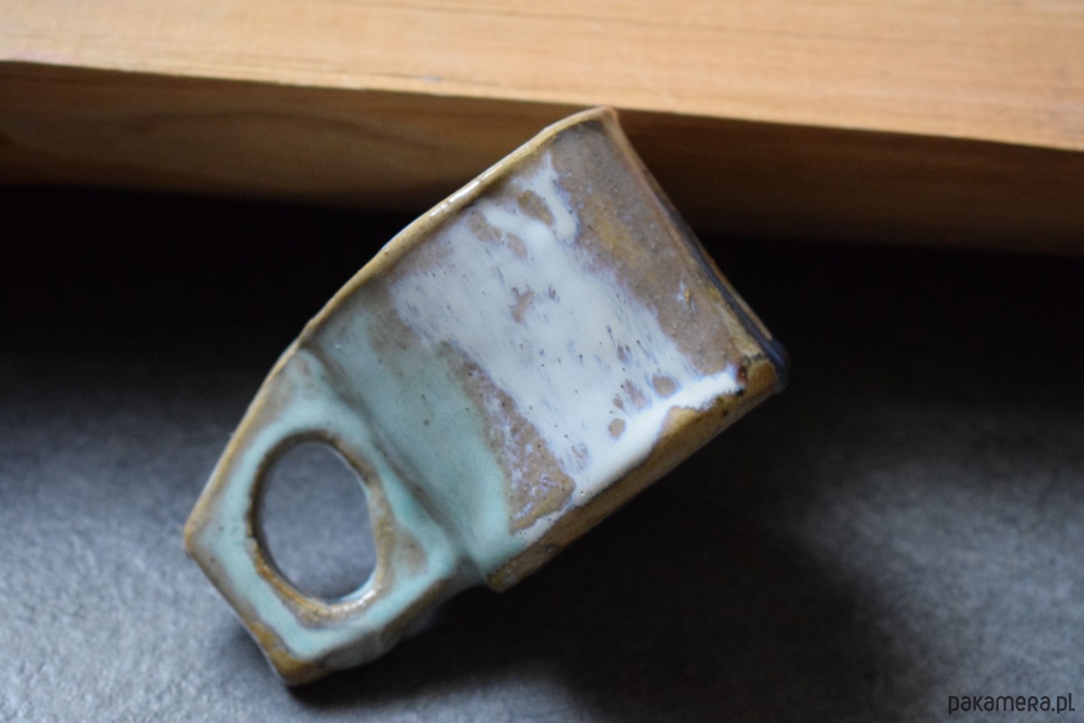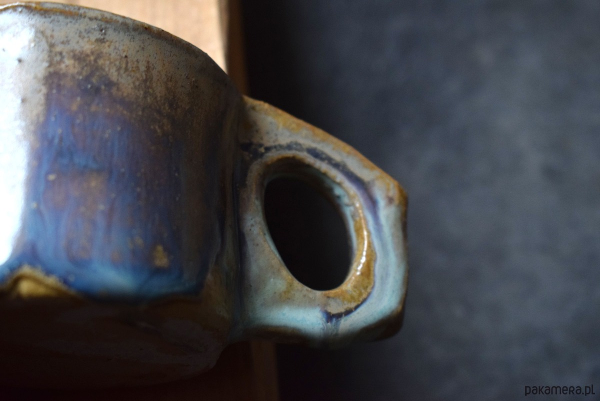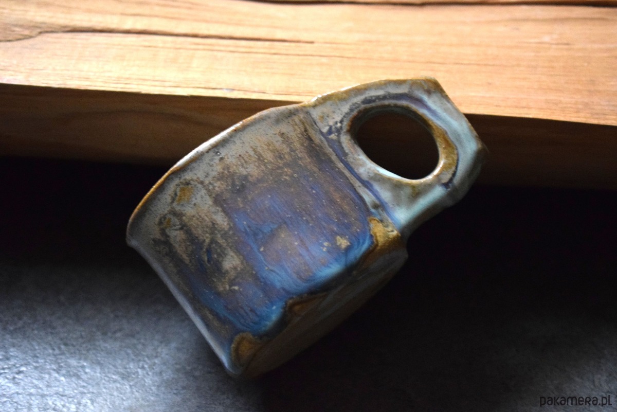 Ta filiżanka ma formę kubka z oryginalnym i wygodnym w użytkowaniu kształtem ucha. Zrobiłam ją ręcznie z jasnej gliny i wypaliłam w temperaturze 1230°C, żeby nadać jej najwyższą jakość i trwałość w codziennym użytkowaniu, a przy tym wydobyć głębię kolorów szkliw. Jest unikatowa, bo wykonana BEZ UŻYCIA FORMY. Każda następna z tej serii będzie się już zatem różniła od poprzedniej.