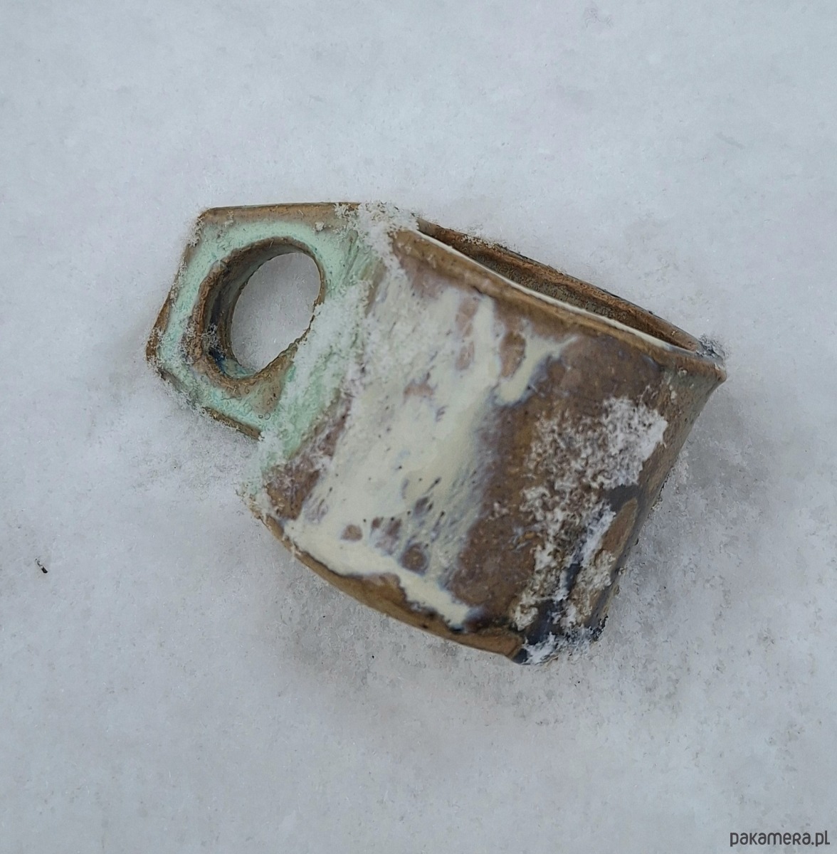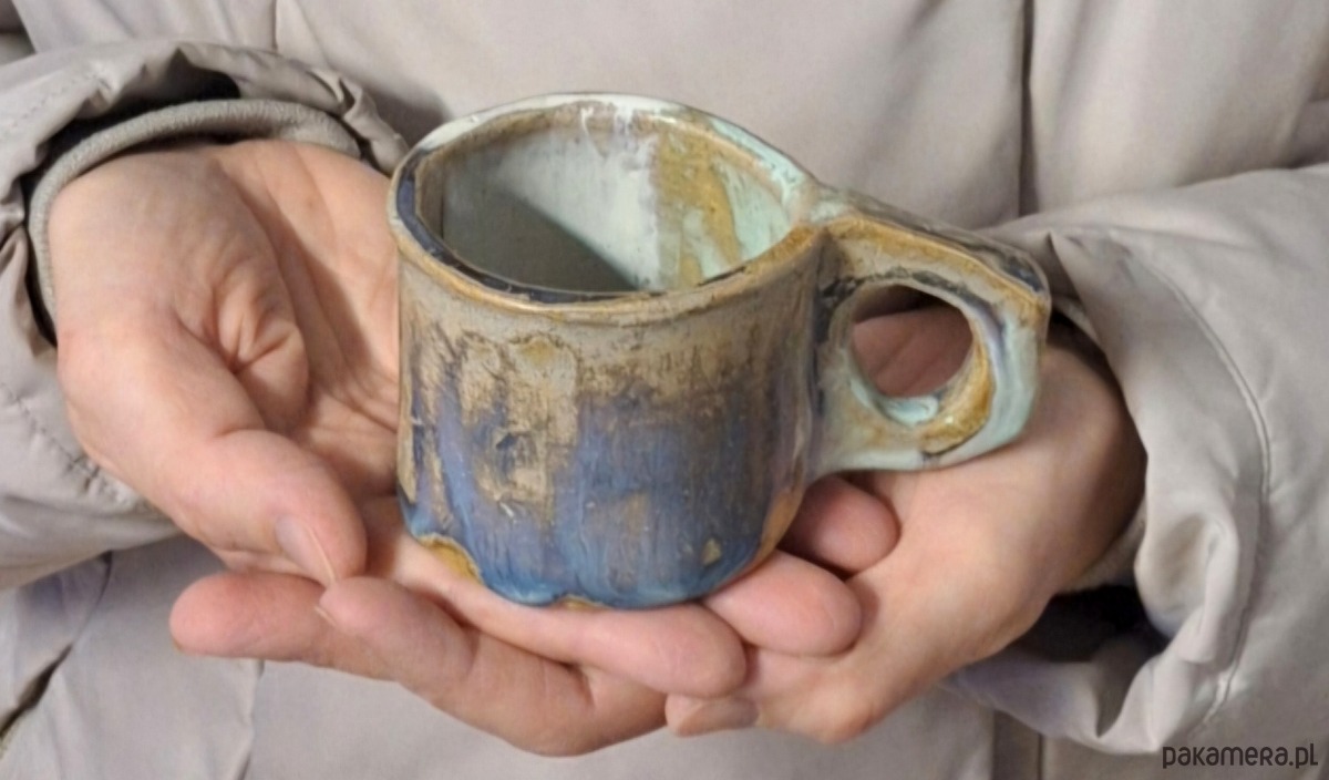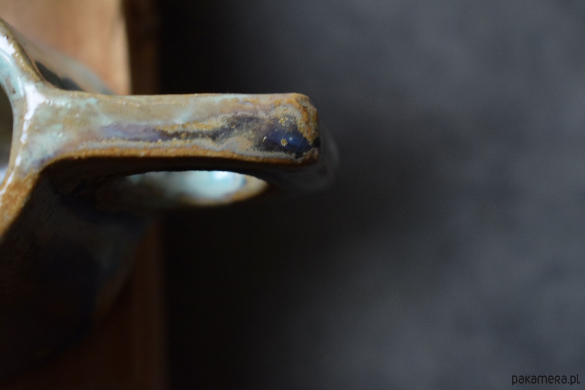 Ta filiżanka ma formę kubka z oryginalnym i wygodnym w użytkowaniu kształtem ucha. Zrobiłam ją ręcznie z jasnej gliny i wypaliłam w temperaturze 1230°C, żeby nadać jej najwyższą jakość i trwałość w codziennym użytkowaniu, a przy tym wydobyć głębię kolorów szkliw. Jest unikatowa, bo wykonana BEZ UŻYCIA FORMY. Każda następna z tej serii będzie się już zatem różniła od poprzedniej.
