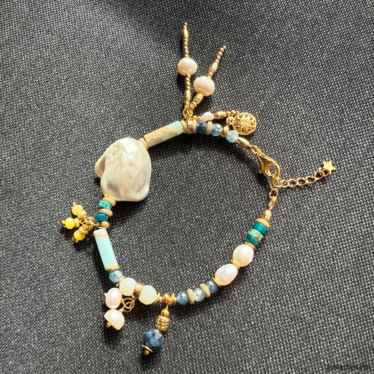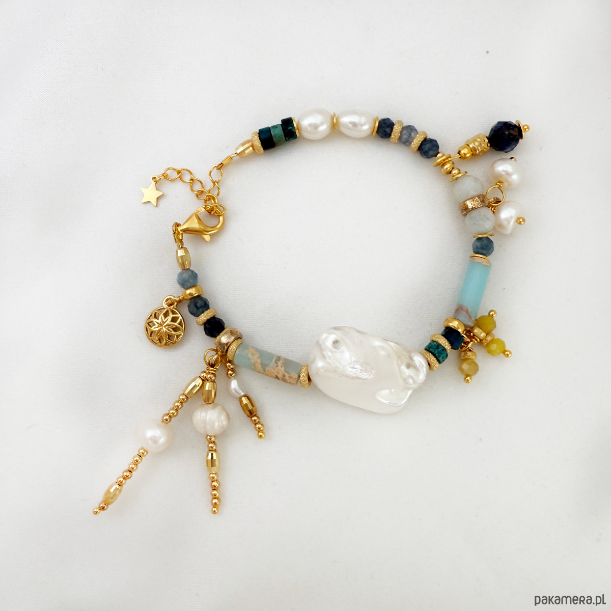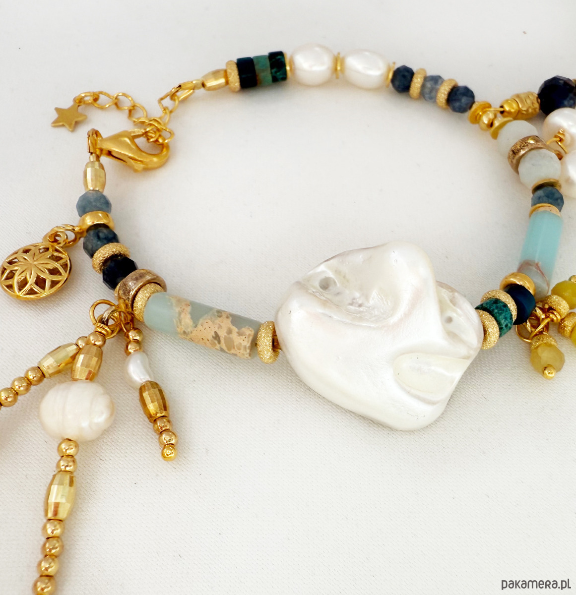 To nie jest zwykła bransoletka – to manifest stylu, duszy i kobiecej wolności. Ręcznie wykonana z pasją i dbałością o każdy szczegół, łączy różnorodne naturalne kamienie, bogactwo faktur i złocone detale, tworząc pełną życia, artystyczną kompozycję.