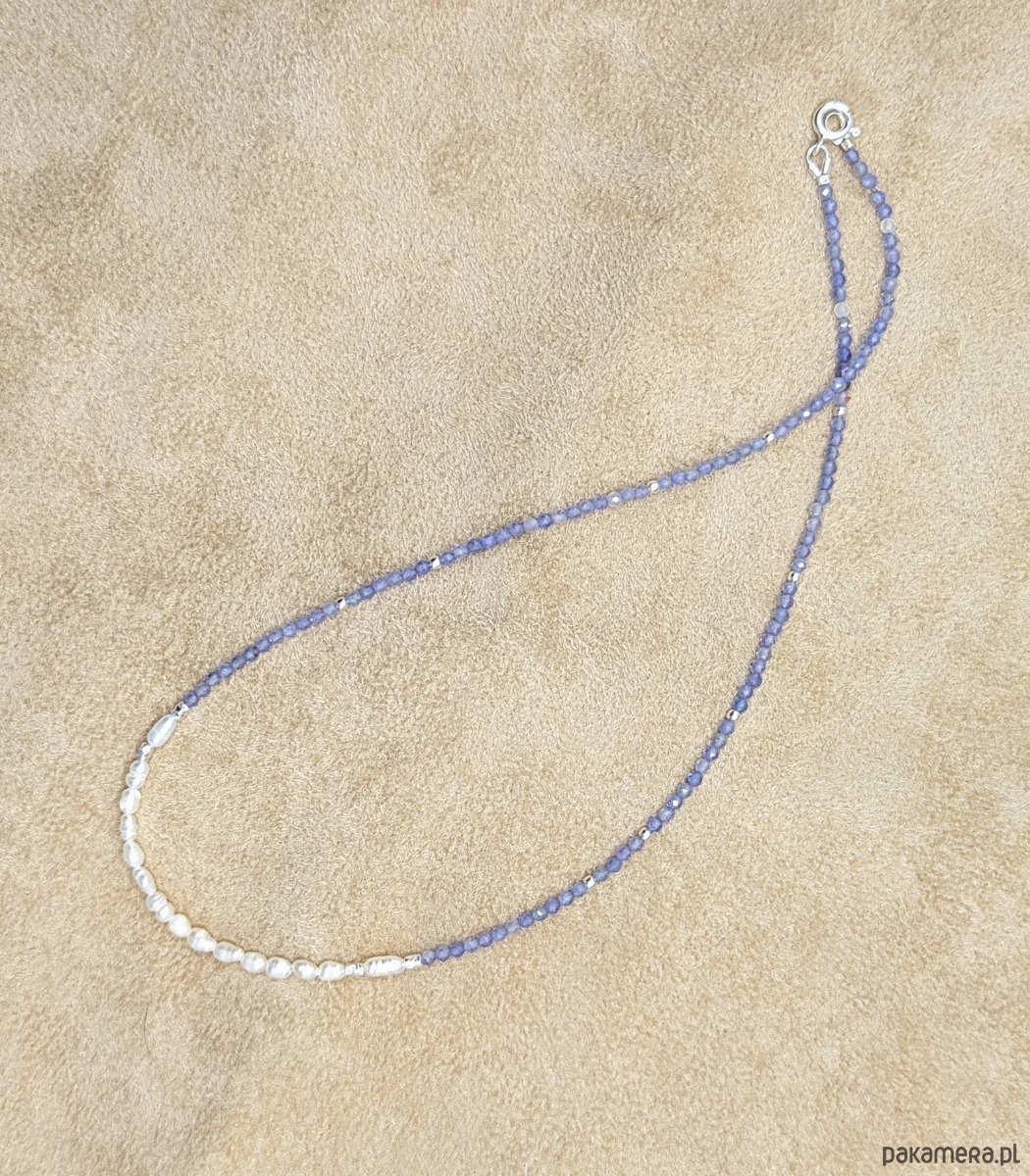 Naszyjnik na wiele okazji, zarówno na co dzień, jak również do eleganckich stylizacji. Piękny fiolet tanzanitu zachwyca. Ten rzadki kamień nie wychodzi z mody. W połączeniu z drobnymi perełkami naszyjnik stanowi modny dodatek.