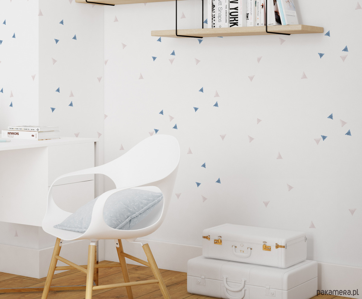 Tapeta dla dzieci Crazy Triangles jest bardzo delikatna, nie narzucająca się lecz oddająca ciepło i miękkość w aranżacji przestrzeni. Crazy Triangles ma lekki, minimalistyczny design z drobnymi trójkątami w losowym układzie. Trójkąty są w dwóch kolorach – niebieskim i jasnoróżowym – co nadaje jej subtelny, nowoczesny wygląd. Tło jest białe, co sprawia, że wzór wygląda lekko i przestrzennie. Całość tworzy efekt dynamicznego, ale jednocześnie delikatnego wzoru, który pasuje do nowoczesnych wnętrz lub jako tło do różnych zastosowań aranżacyjnych. Tapeta posiada białe tło.