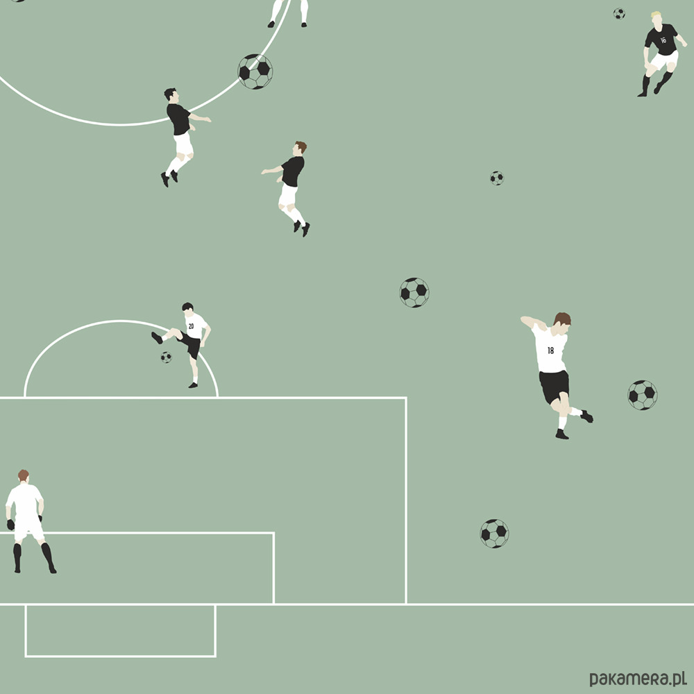 Tapeta dla dzieci Piłka Nożna (Football )to oryginalna tapeta ścienna dla wszystkich fanów piłki nożnej. Motyw tapety z najpopularniejszą dyscypliną spotu doskonale sprawdzi się oraz zachwyci w pokoju dziecięcym. Ciekawy wzór, inspirowany światem sportu charakteryzujący prostą formą nada oryginalnego charakteru we wnętrzu. Grafika zawiera dwa zespoły graczy z piłkami. Linia boiska tworzy tło całej tapety.