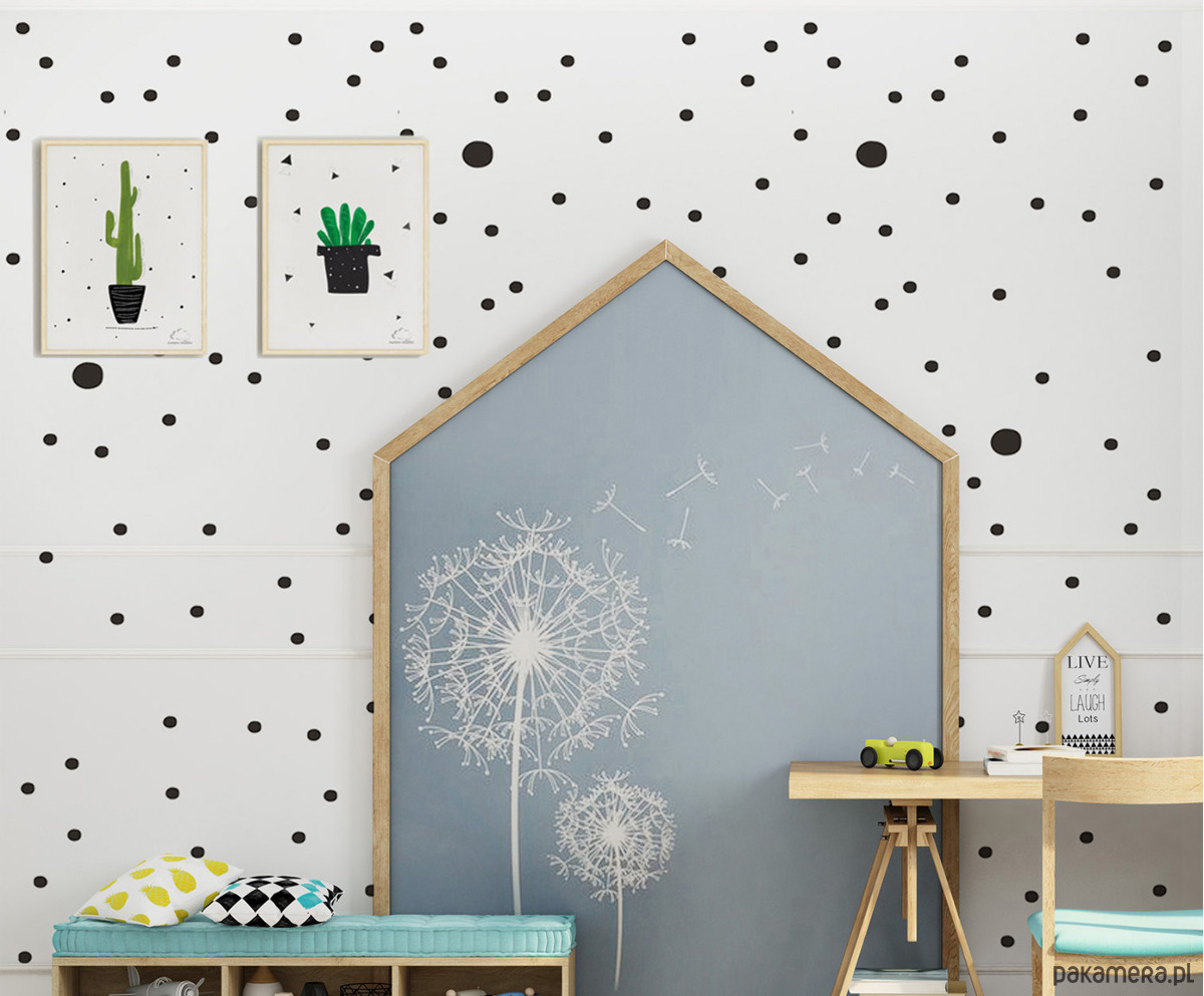 Tapeta dla dzieci Kropki stworzy niepowtarzalny klimat. Spodoba się miłośnikom skandynawskich wnętrz i oszczędnych form w pokojach dziecięcych. Wzór charakteryzujący się prostą formą zachwyci spełniając marzenia naszego dziecka. Świetnie komponuje się w minimalistycznych wnętrzach wśród białych i kolorowych mebli.