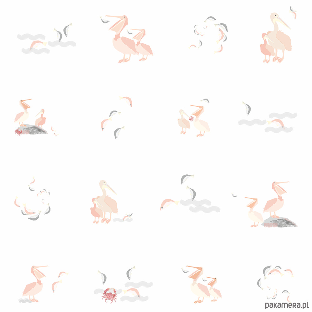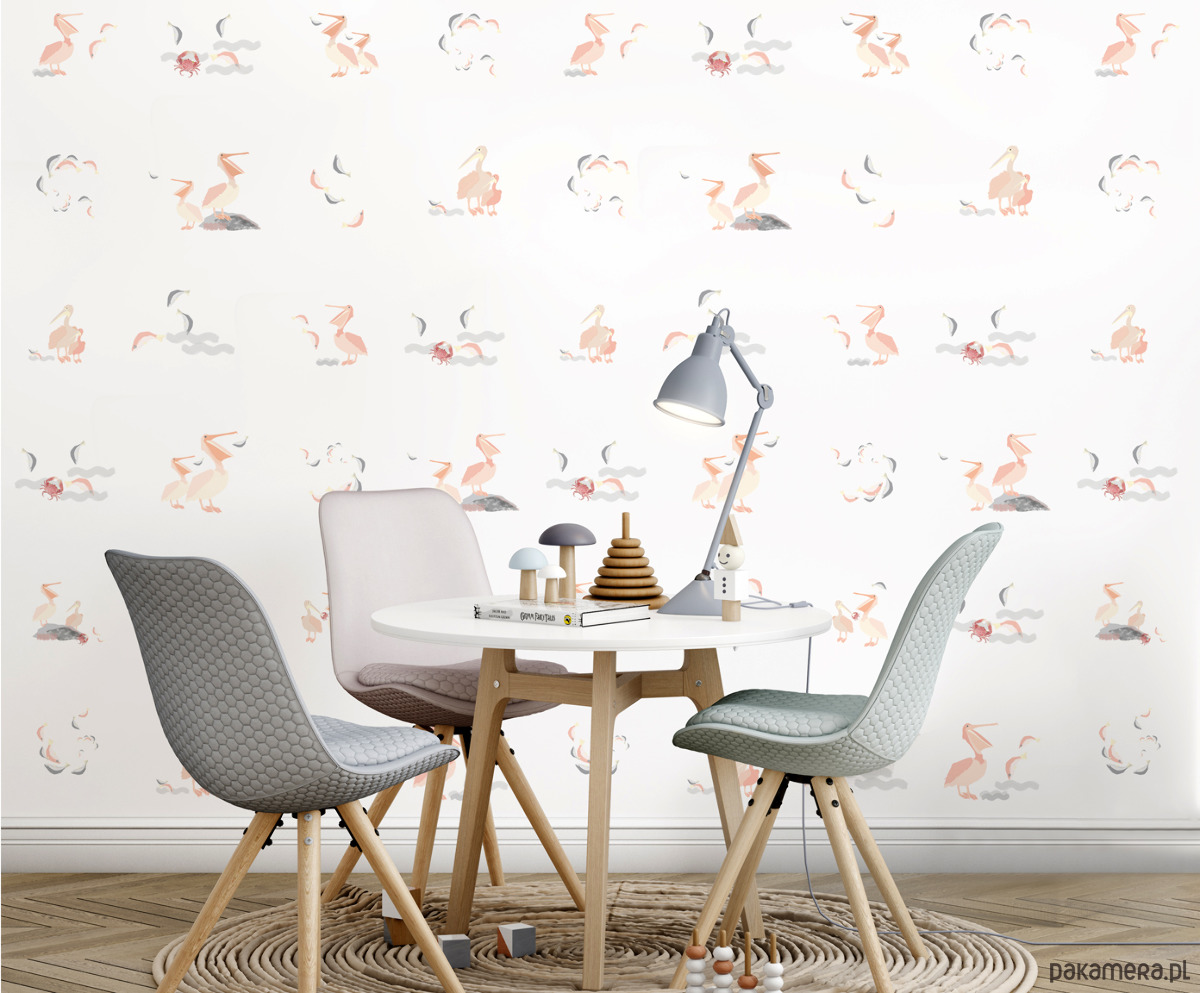 Tapeta dla dzieci Pelikany (Fish Hunters) stworzy cudowny klimat, nadając niezwykłej przytulności oraz wyjątkowego charakteru we wnętrzu. Przyjazny wzór sprzyja wyciszeniu przez co idealnie sprawdzi się w pokoju dziecka. Już jeden pas może nadać szczególny charakter, a przy większych powierzchniach pięknie prezentuje się na jednej czy dwóch ścianach. Elementami wzoru są delikatne różowe pelikany, wysepki, fale oraz rybki.
