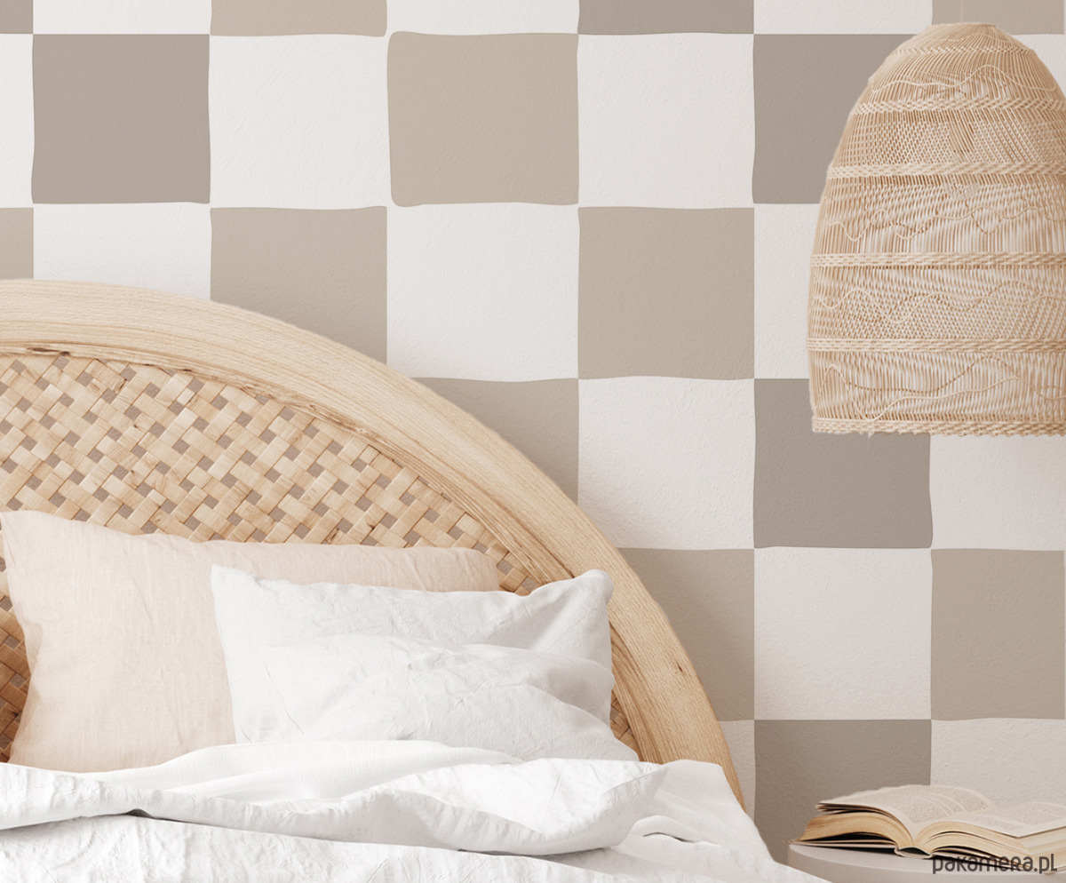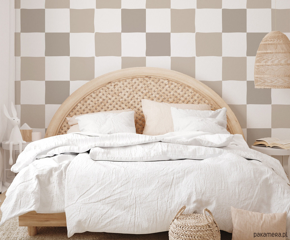 Tapeta Beige Chess – stylowa tapeta w szachownicę do pokoju dziecięcego