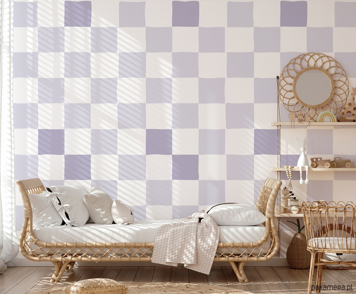 Tapeta Lavender Chess to piękna i subtelna dekoracja ścienna, która doskonale sprawdzi się w pokoju dziecięcym. Klasyczny wzór szachownicy w pastelowym odcieniu lawendy połączony z ciepłą, bielą tworzy harmonijną i spokojną aranżację. To idealna tapeta do pokoju dziecka, która wprowadza do wnętrza lekkość, przytulność i ponadczasowy styl.