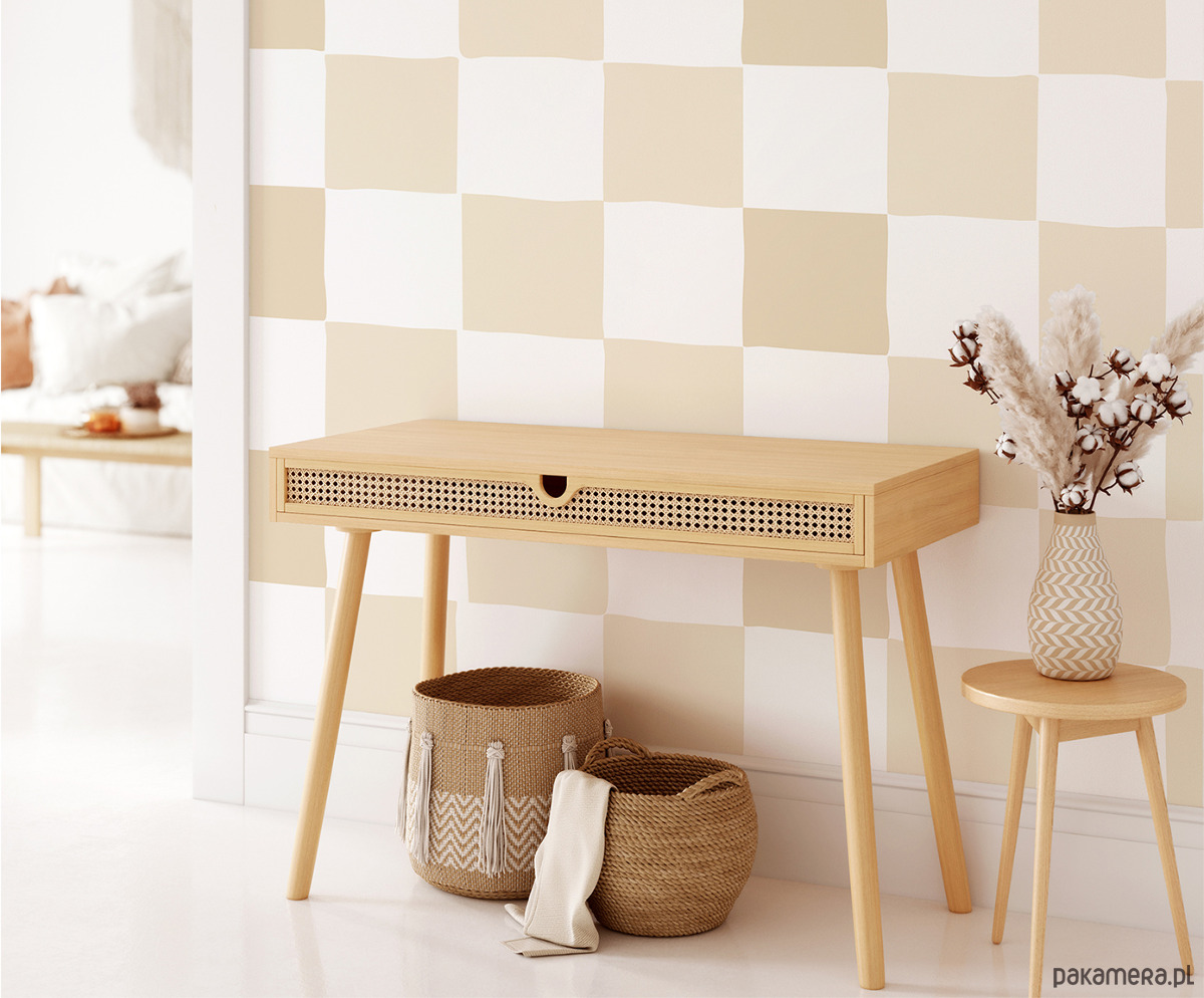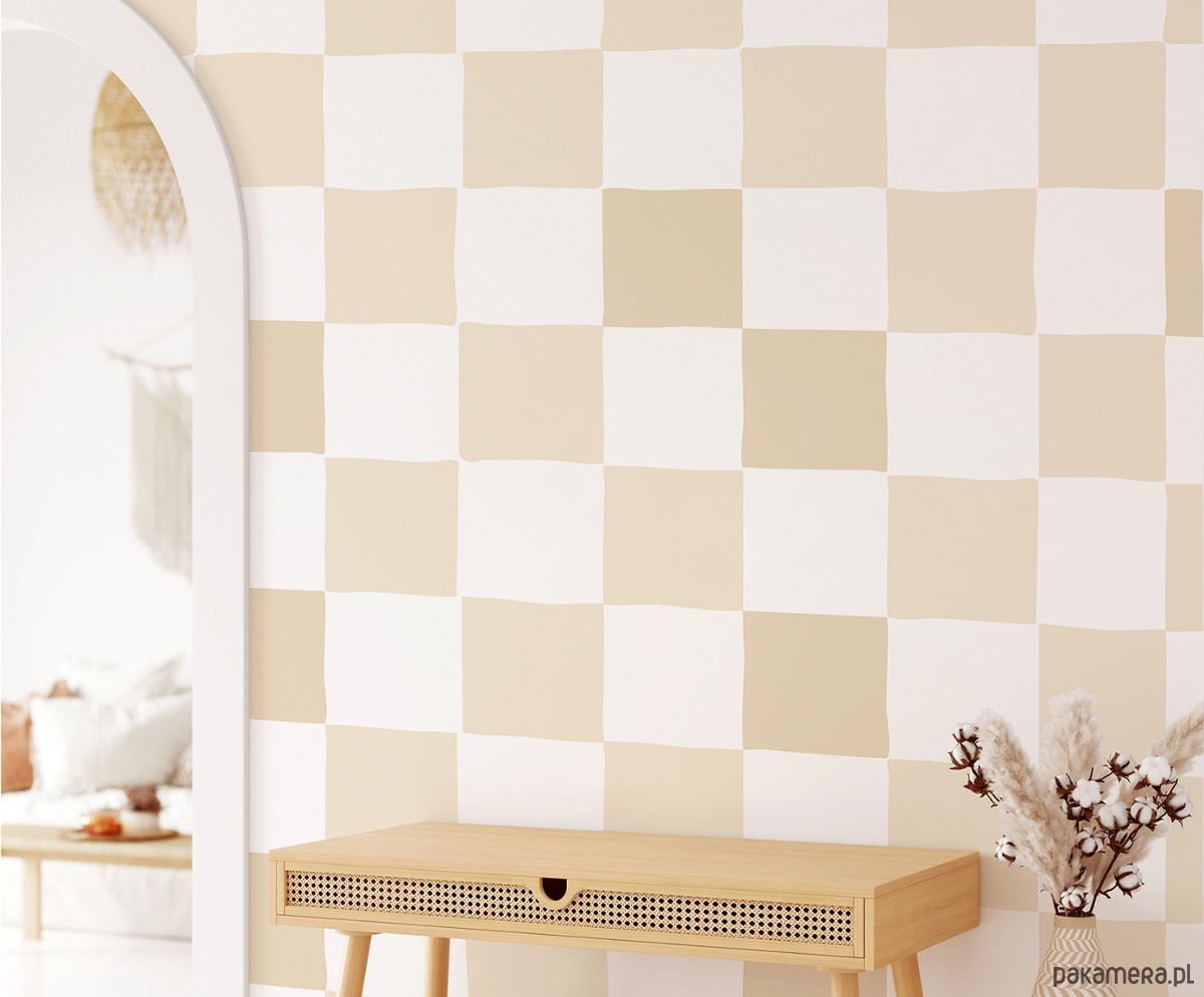 Tapeta Peach Chess to wyjątkowa propozycja dla osób, które chcą stworzyć stylowy i przytulny pokój dziecięcy. Delikatny wzór szachownicy w ciepłym odcieniu brzoskwiniowego beżu połączony z kremową bielą wprowadza do wnętrza lekkość, harmonię i naturalne ciepło. To doskonała tapeta do pokoju dziecka, która łączy nowoczesny design z ponadczasową estetyką.