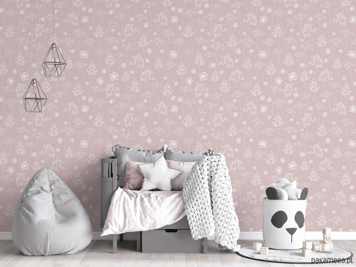 Tapeta do Pokoju Dziecięcego. Łąka Pudrowy Róż..