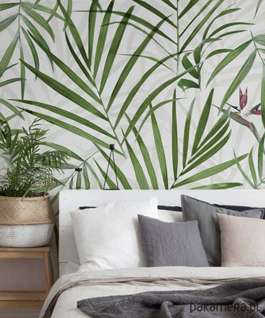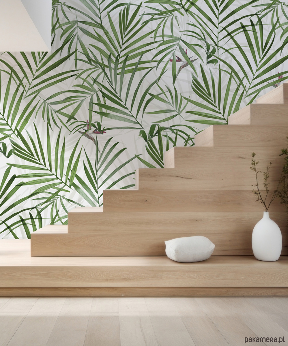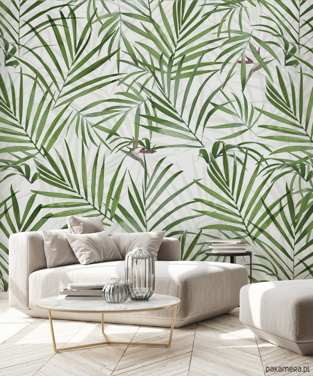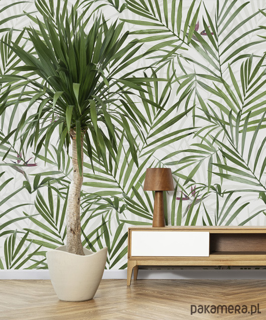 Tapeta ścienna Liście palmy, elegancki, zielony wzór botaniczny na białym tle, fototapeta dżungla, w duże, zielone liście. Stwórz swoją własną, indywidualną przestrzeń do życia.