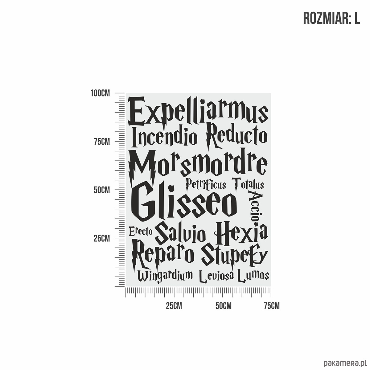 Naklejka Zaklęcia Harry Potter Rozmiary