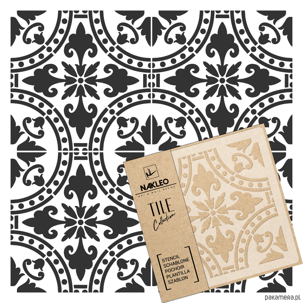 Nakleo Tile Collection to szablony malarskie wielokrotnego użytku wykonane z wytrzymałego tworzywa sztucznego będące imitacją wzorów występujących na płytkach ceramicznych. W kolekcji dostępne są zarówno klasyczne renesansowe wzory, motywy orientalne i śródziemnomorskie jak i współczesne kompozycje geometryczne. Każdy wzór dostępny jest w ośmiu formatach do wyboru – od 10x10cm do 60x60cm. Szablony można używać dowolną ilość razy dzięki czemu z łatwością pokryjesz nawet największe powierzchnie dowolną kompozycją wzorów i kolorów.