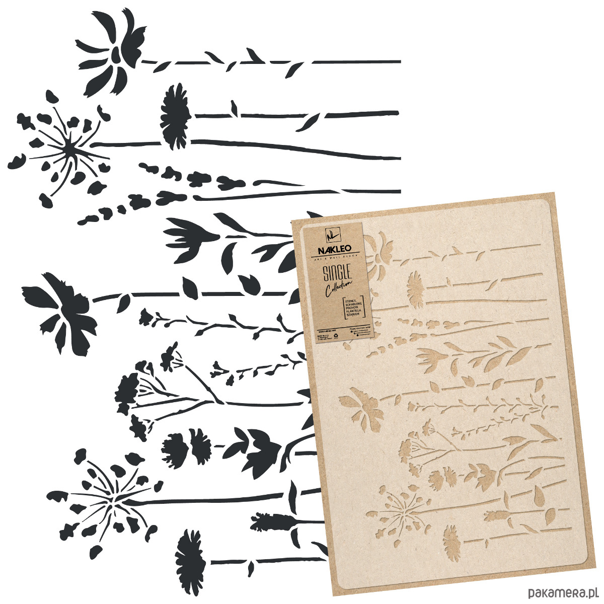Szablony malarskie wielokrotnego użytku z kolekcji Nakleo Single Collection wykonane są z wytrzymałego półprzeźroczystego tworzywa sztucznego, co sprawia że są łatwe w użyciu i utrzymaniu w czystości. Starannie zaprojektowane wzory pomogą nadać wnętrzu niepowtarzalny styl i charakter. Wszystkie motywy dostępne są w dwóch rozmiarach – rozmieszczone na arkuszu 45x65cm lub 65x95cm.