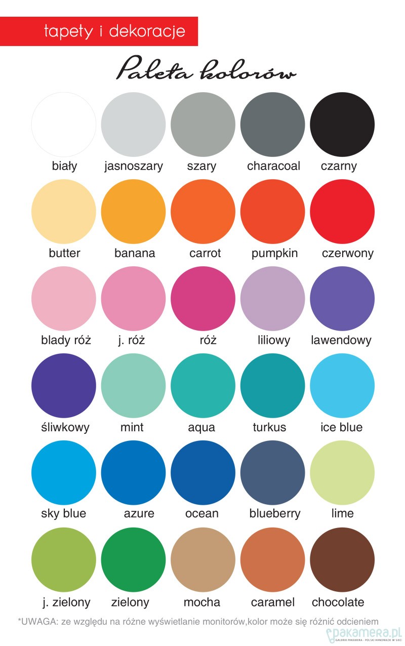 * Rozmiar: arkusz tapety o wymiarach 2,8 x 1 m * wybierz kolor swojej tapety (tapeta składa się z domyślnego koloru jakim jest biały oraz z dowolnego koloru, który możesz wybrać z palety kolorów) *Jeżeli chciałbyś, by tapeta miała zmodyfikowany kolor, wzór lub rozmiar napisz proszę do nas. * Materiały, na których możemy wydrukować tapetę: - Tapeta na podkładzie flizelinowym o delikatnej strukturze piasku, klejona przy pomocy kleju do tapet - Folia samoprzylepna klejona bezpośrednio do ściany. * na życzenie arkusze tapety rozcinane są na mniejsze o szerokości 50 cm * Do tapety dołączona jest instrukcja klejenie tego rodzaju tapet. * Po zakupie podaj: -materiał, na którym ma być wykonana -czy pasy mają być rozcięte na mniejsze