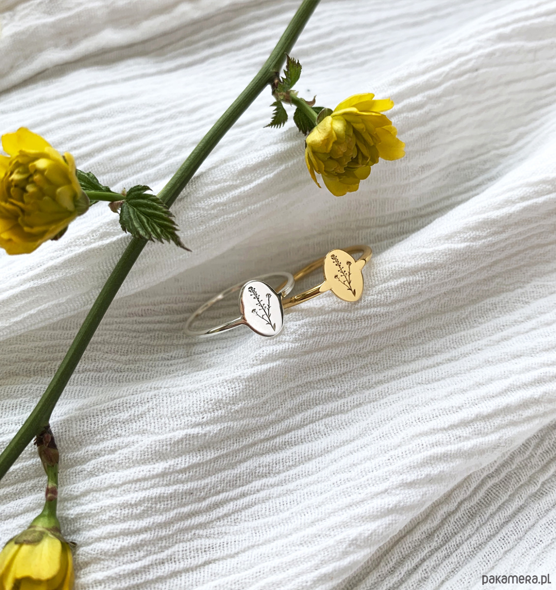 Pierścionek z delikatnym grawerem tasznika