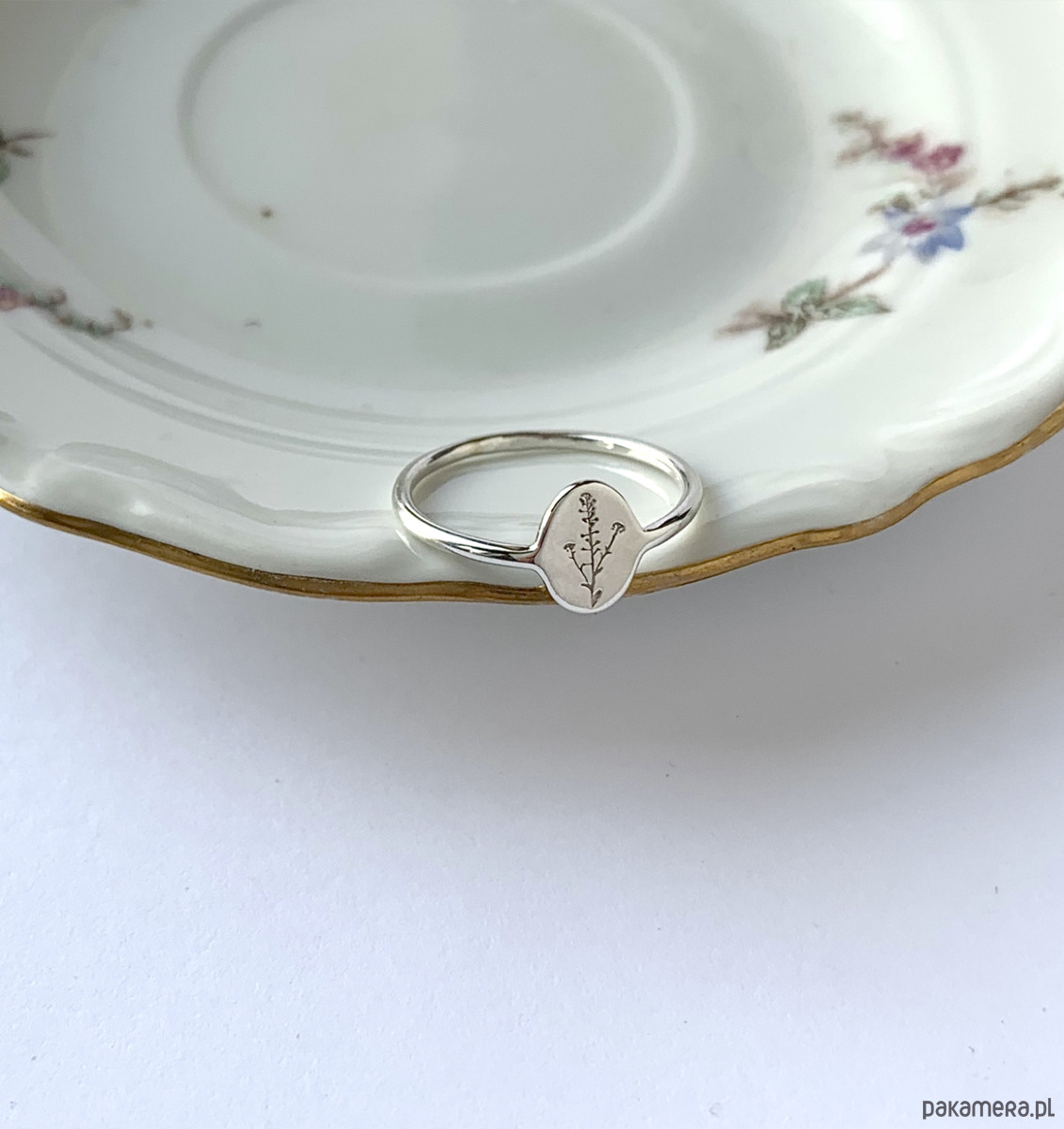 Pierścionek z delikatnym grawerem tasznika