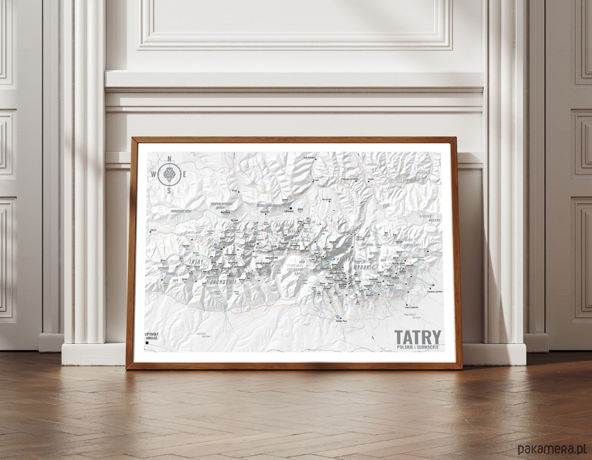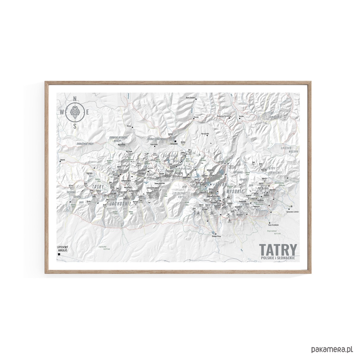 Szlaki TATRZAŃSKIE Tatry Polskie i Słowackie mapa plakat - wersja biała