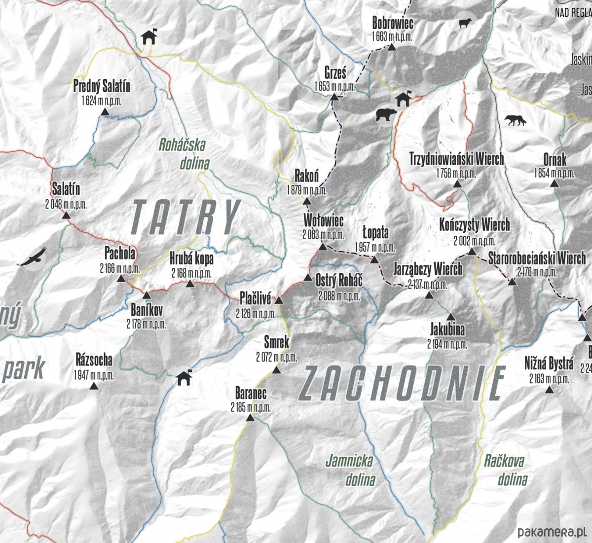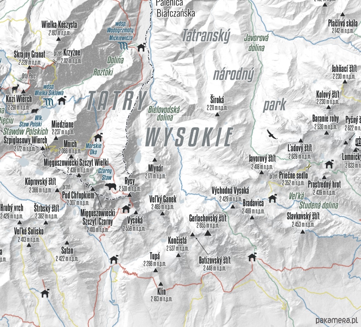 mapa szlaków turystycznych w Tatrach Polskich i Słowackich