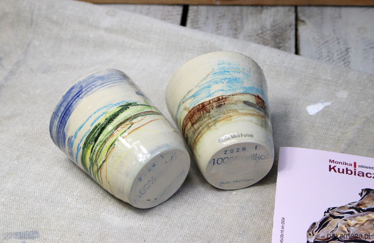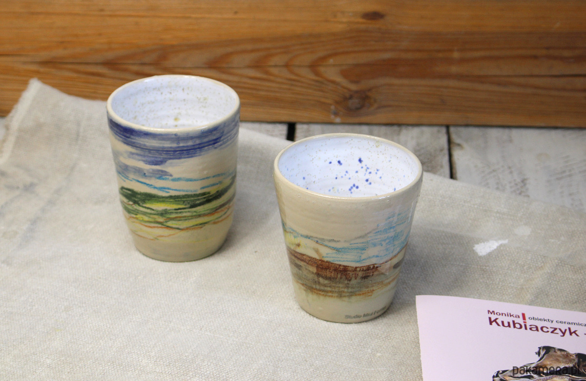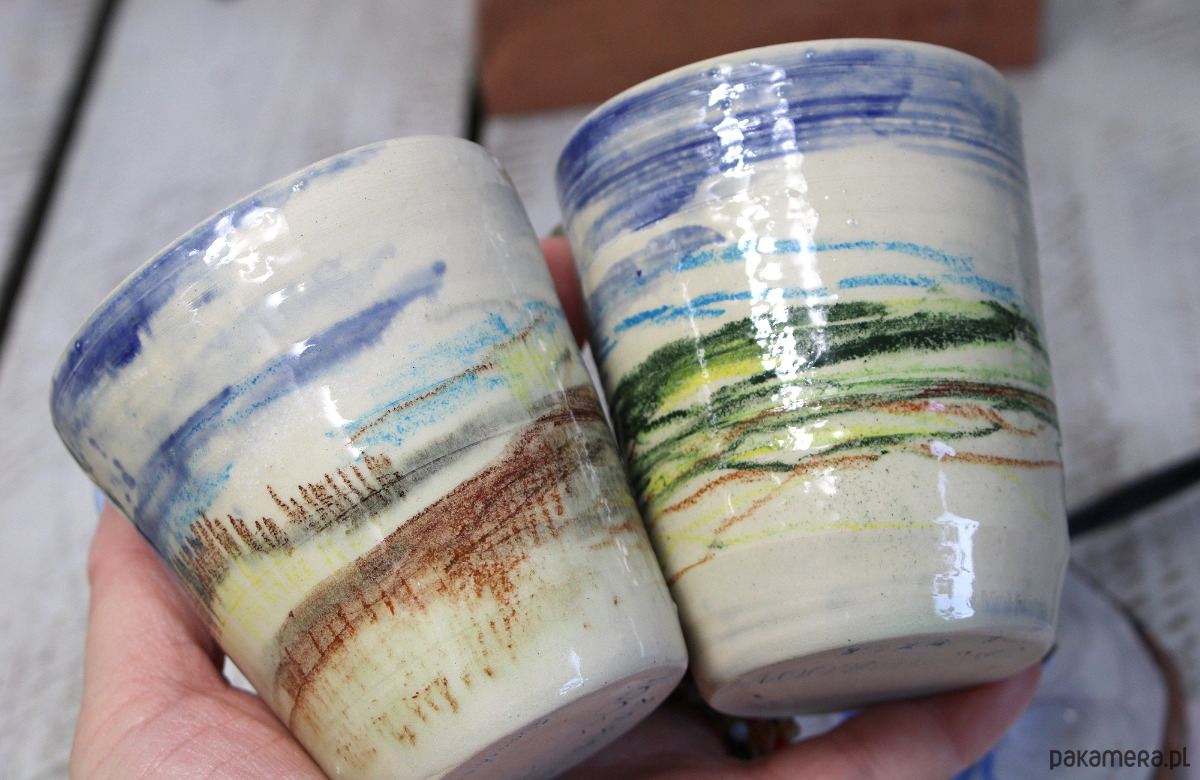 Kubeczki toczone na kole garncarskim - całkowity unikat. Dekorowane ręcznie , każdy rysunek niepowtarzalny - moje impresje tatrzańskie.