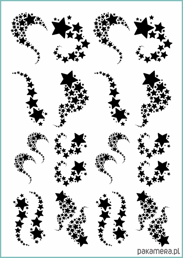 4 kompozycje gwiazdek doskonale sprawdzą się, jako tatuaż zmywalny na Boże Narodzenie, jednak nie tylko. Na arkuszu znajdują się powielone wzory w 2 rozmiarach.